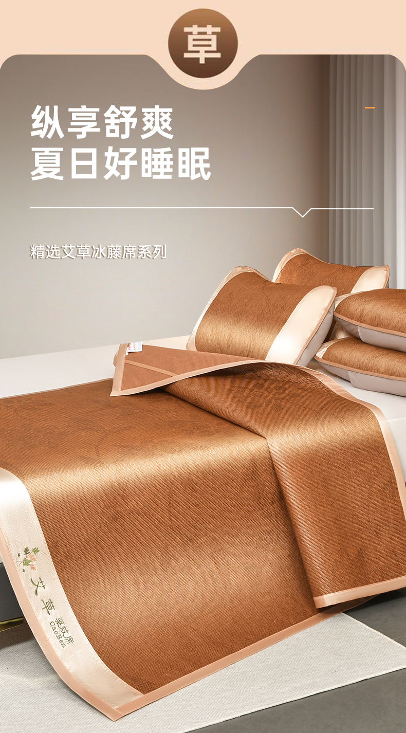 当前位置: 91家纺网 > 商品网购 > 床上用品 > 凉席 > 草席 > 步步高席业 2026新款电商直播热款艾草刺绣宽边款凉席藤席透气凉席 水中花