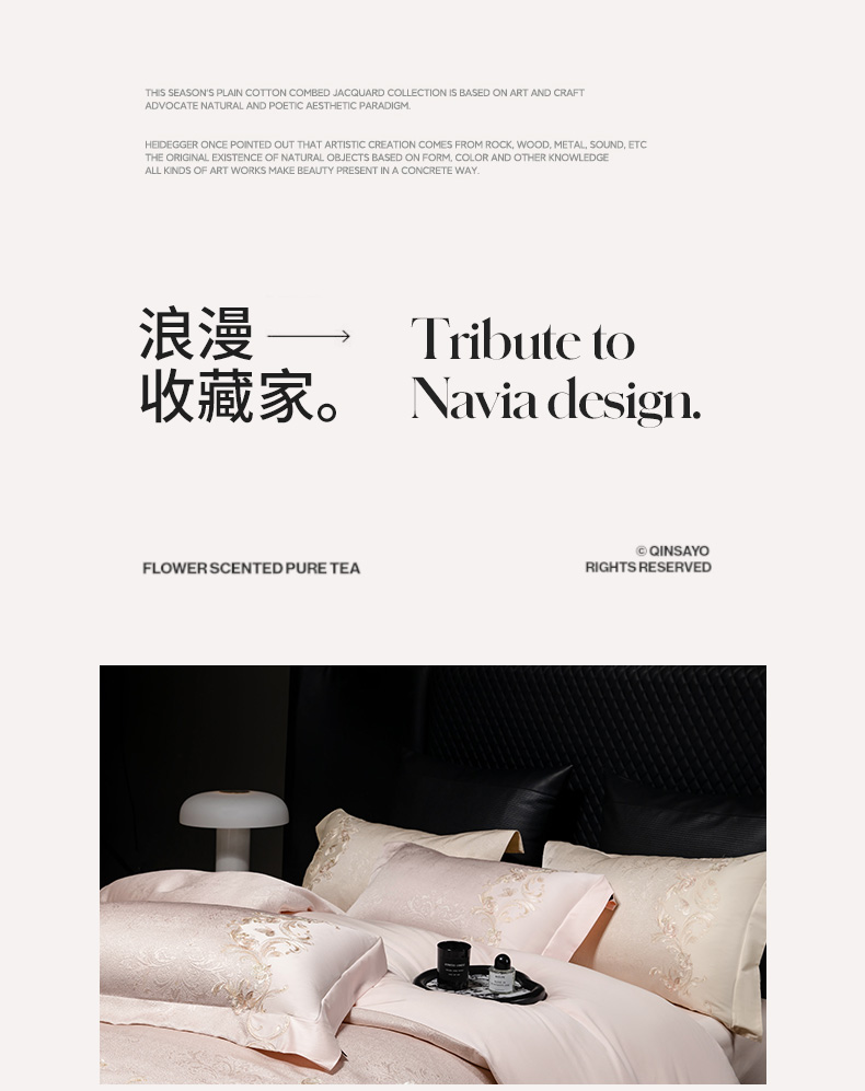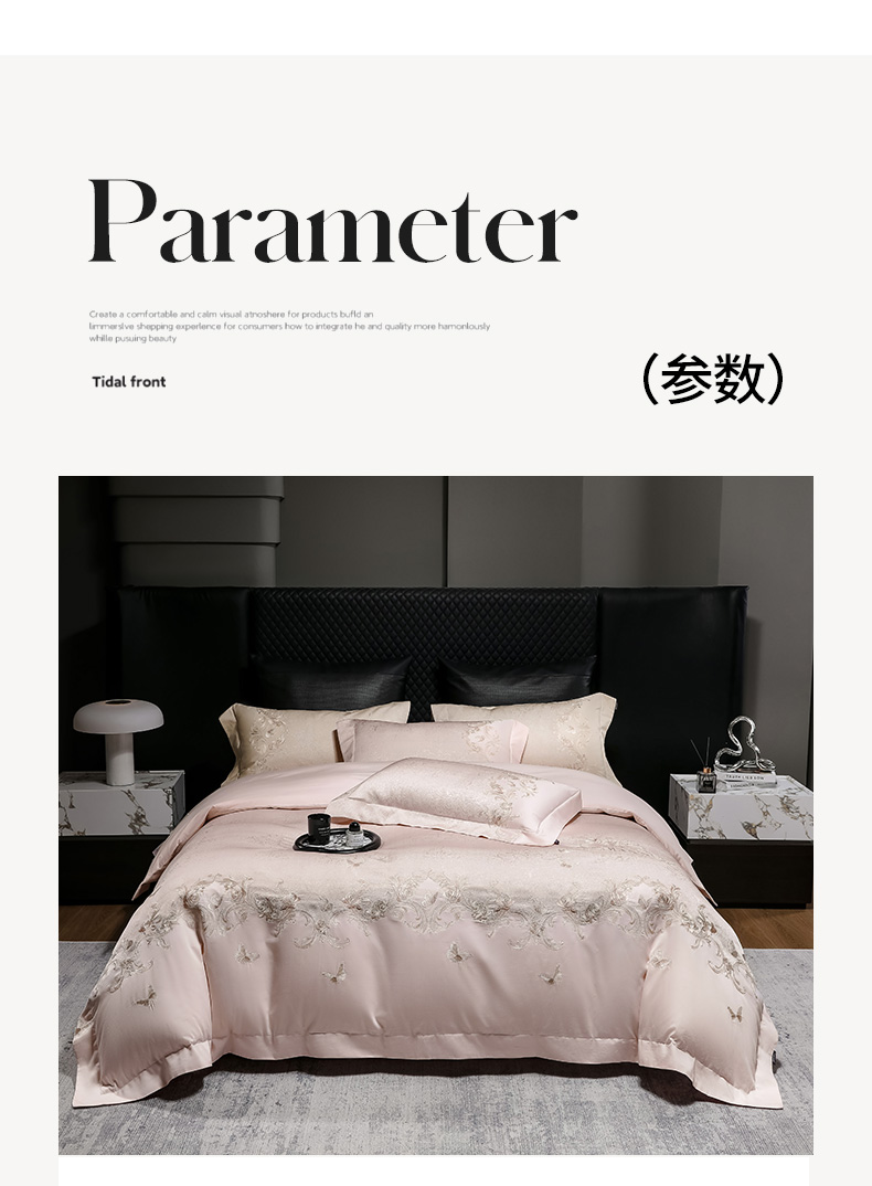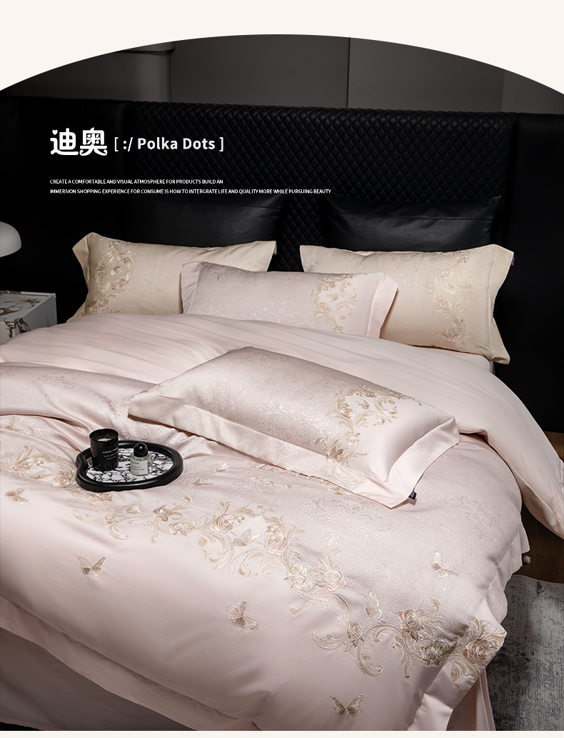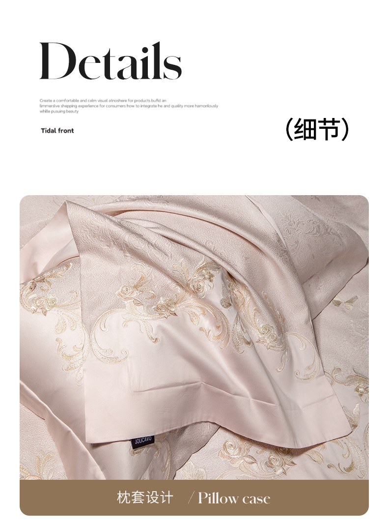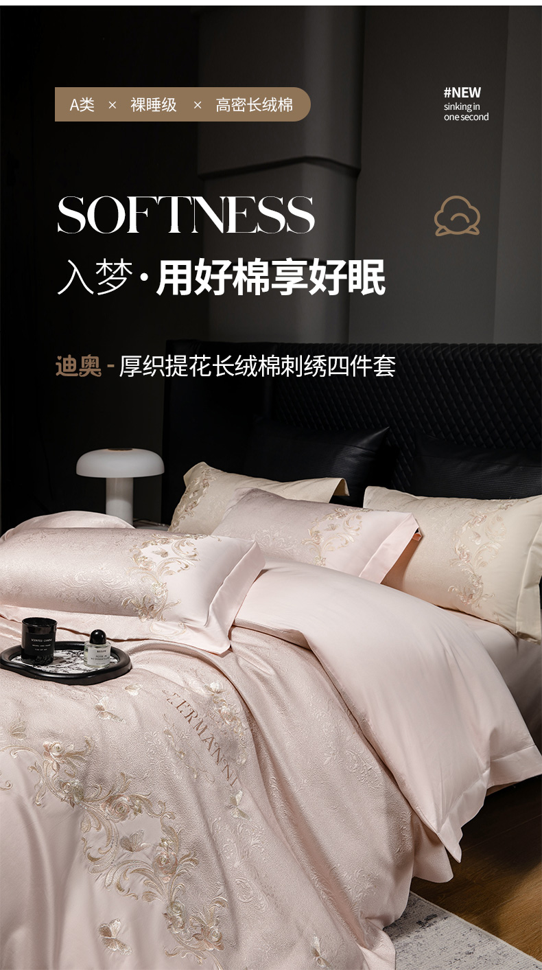 商品名称:乔利卡沃 2026高端新品A类100支长绒棉纯棉四件套100全棉厚织提花高档重工刺绣被套床单床笠床上用品-觅棠 觅棠-柔雪粉