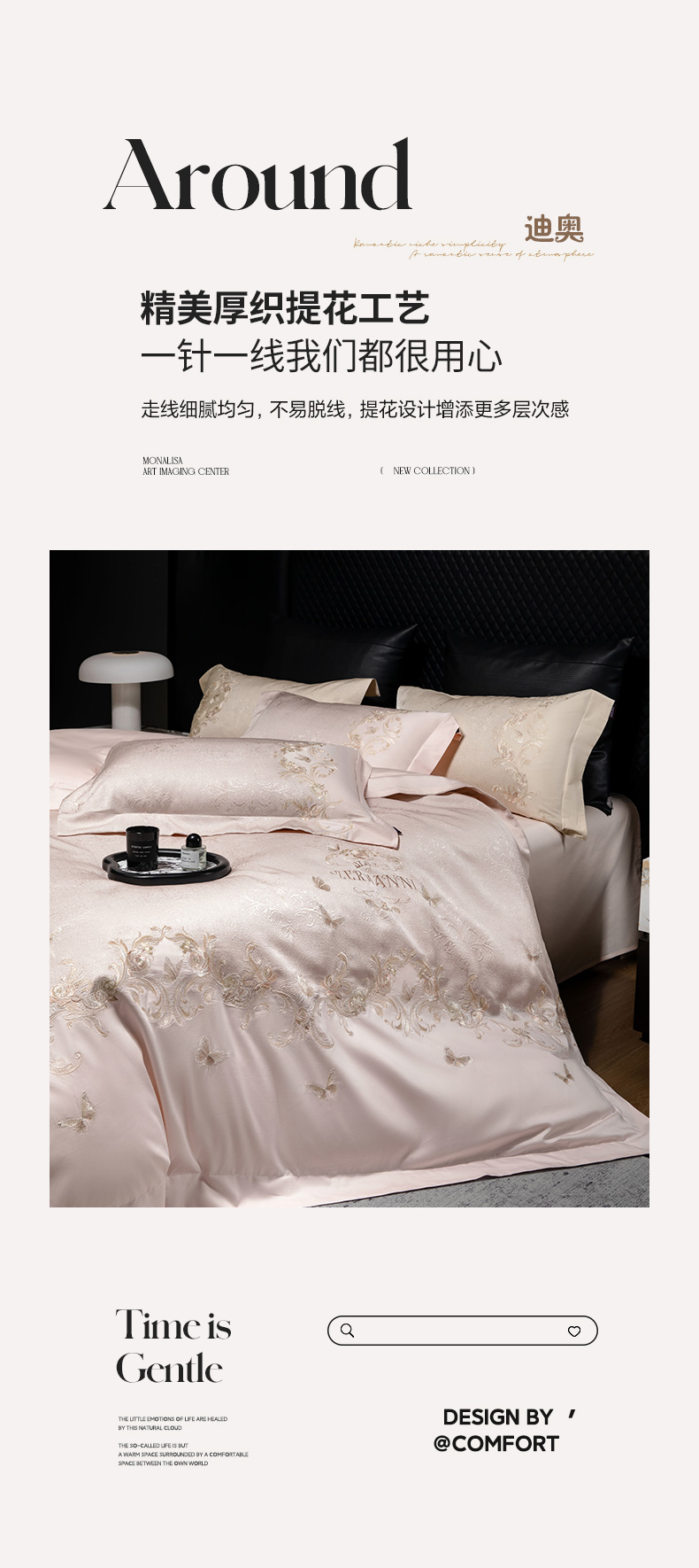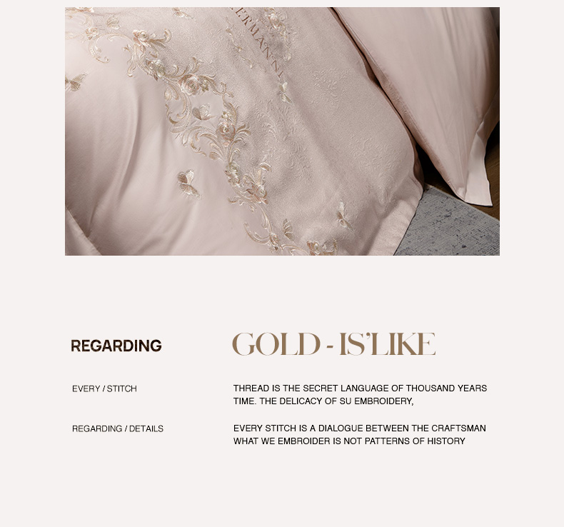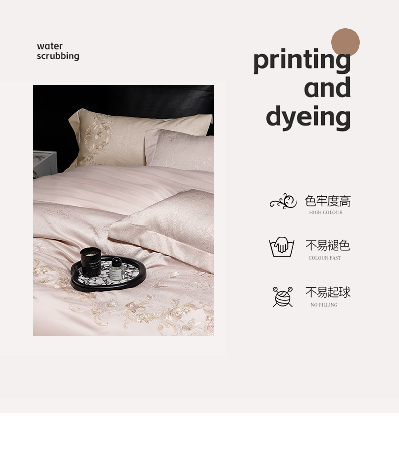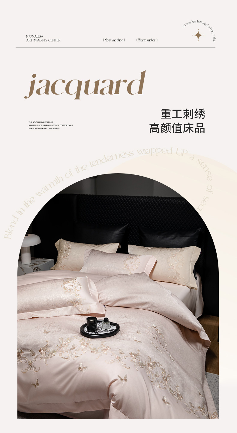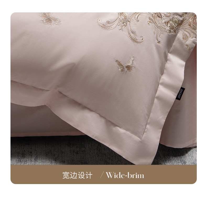 乔利卡沃 2026高端新品A类100支长绒棉纯棉四件套100全棉厚织提花高档重工刺绣被套床单床笠床上用品-觅棠 觅棠-柔雪粉
