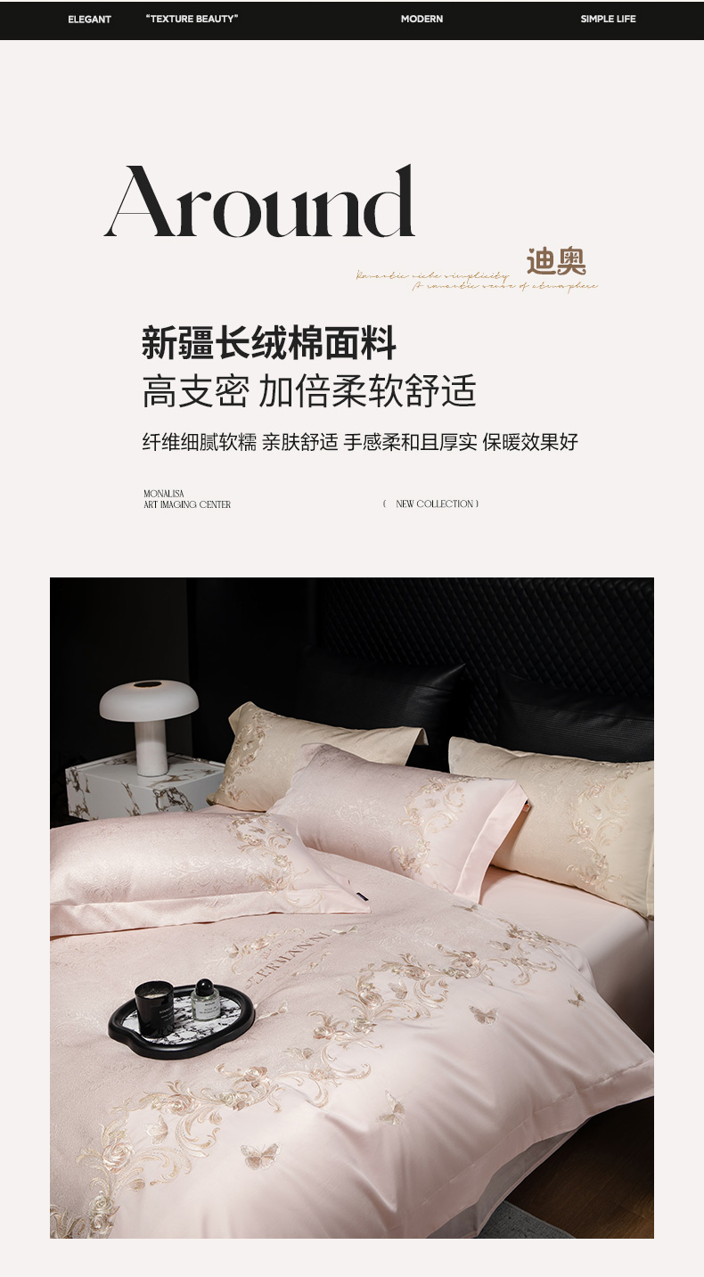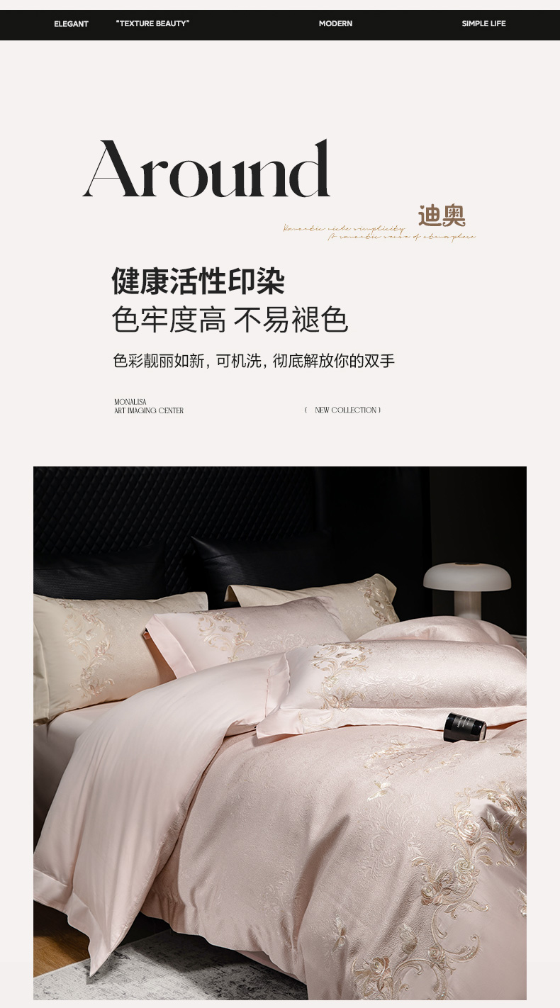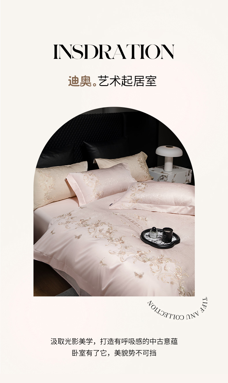 乔利卡沃 2026高端新品A类100支长绒棉纯棉四件套100全棉厚织提花高档重工刺绣被套床单床笠床上用品-觅棠 觅棠-柔雪粉