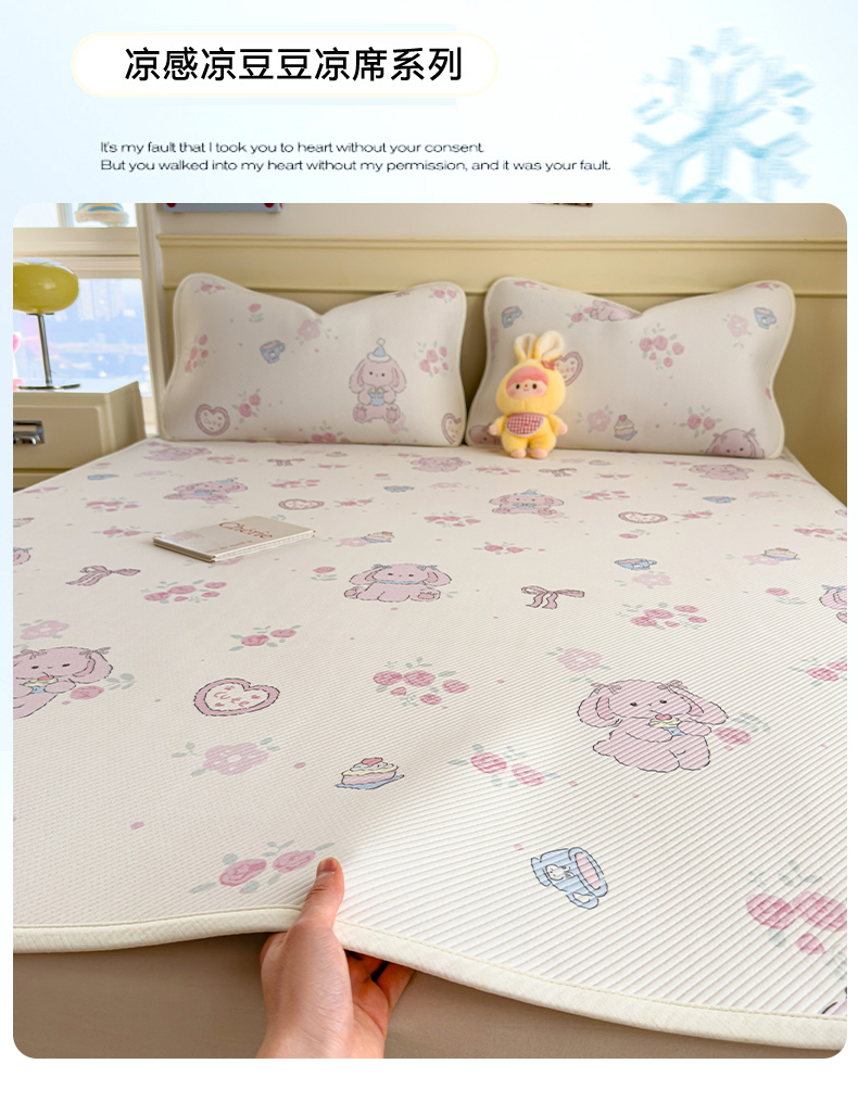 当前位置: 91家纺网 > 商品网购 > 床上用品 > 凉席 > 凉席套件 > 孩子王家纺 2026春夏新款豆豆席卡通凉感值过0.21可机洗夏天学生宿舍单人空调软席凉席席子 波点星星兔 床笠款