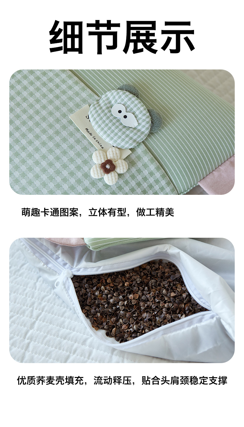 商品名称:(总)2026新款 儿童凉感卡通荞麦枕芯枕头 夏日物语荞麦护颈按摩枕学生儿童枕芯