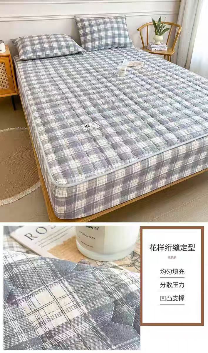 (总)蕾诺家纺 2026新款色织水洗棉棉花夹棉床笠保护套,简兮灰,简兮蓝,橘绿条,青春浅蓝,三分灰格,时光绿,威尼斯粉,威尼斯绿,心语-咖,心语-绿,心语蓝,烟雨灰