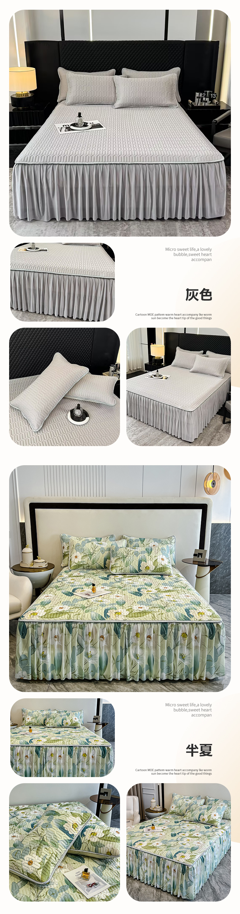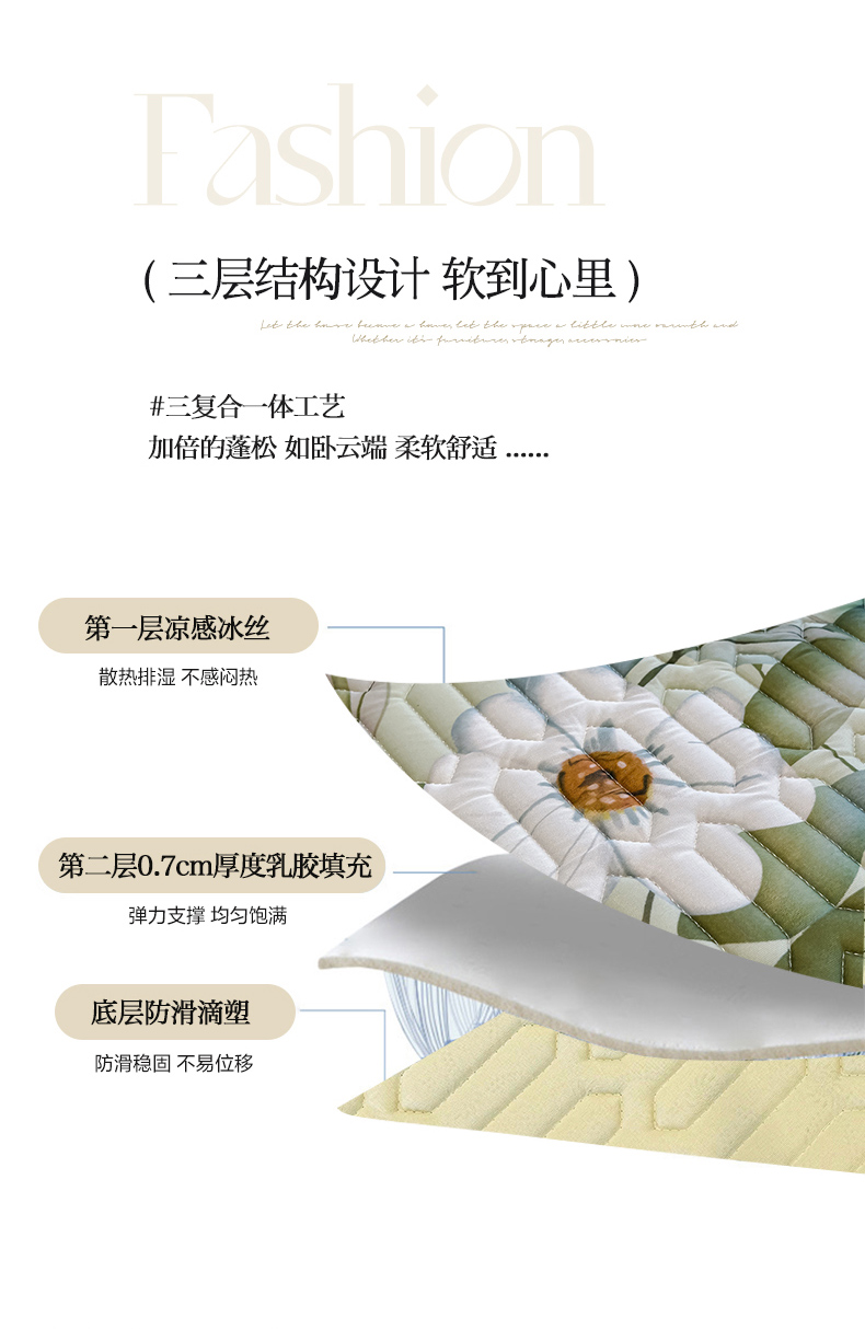 (总)布柔 2026新款PE床笠床裙凉席中分子双面提花复合凉豆豆软席二合一可机洗,花韵粉,花韵灰,花韵蓝,花韵绿,花韵驼