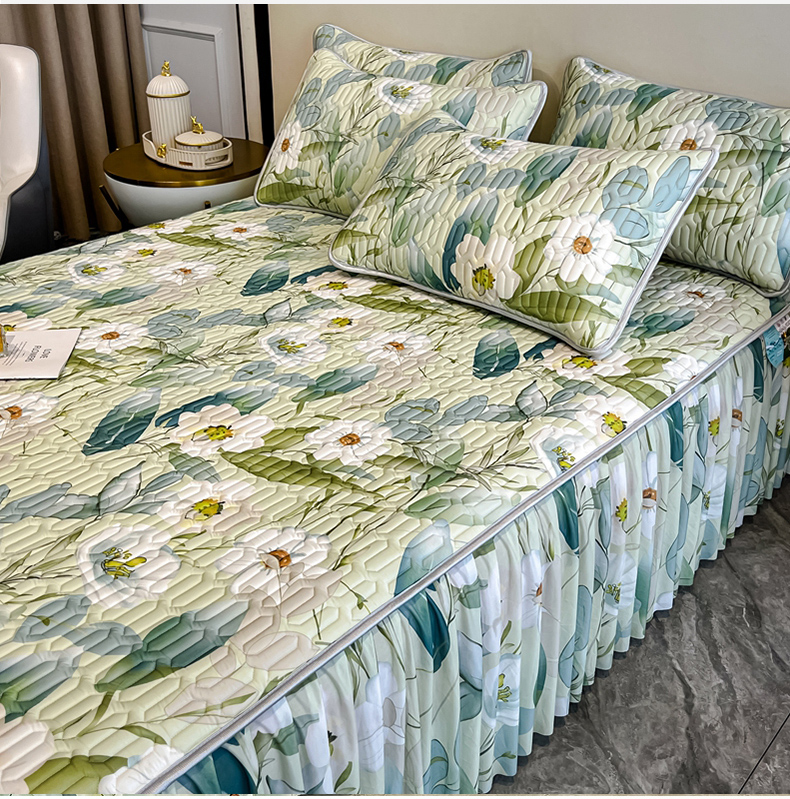 (总)布柔 2025新款加厚刺绣花边夹棉牛奶绒床裙款床笠,麦穗绿,麦穗湖蓝,麦穗灰,麦穗天蓝,麦穗粉