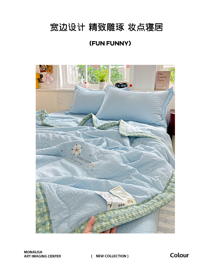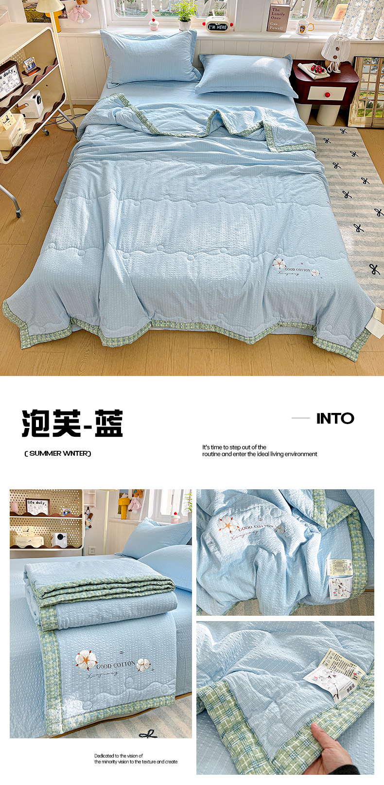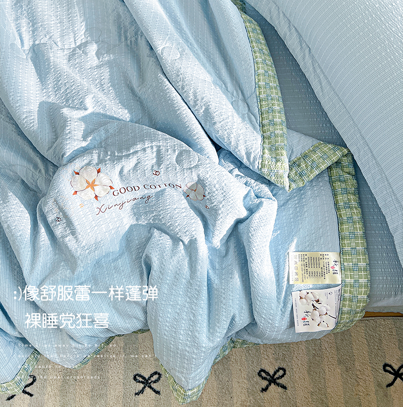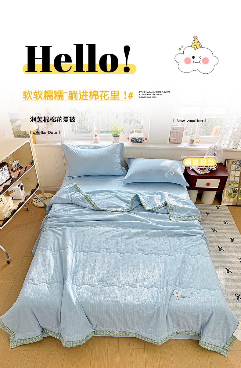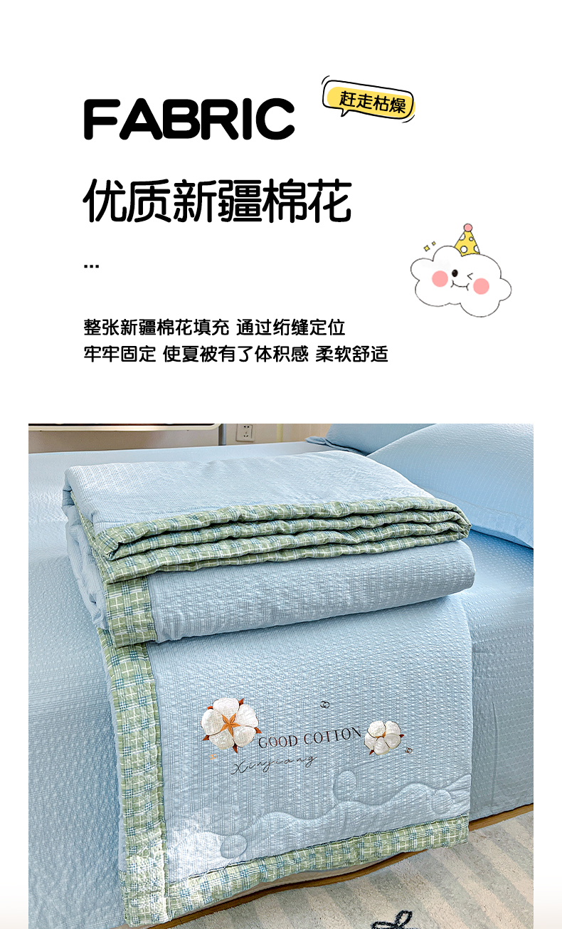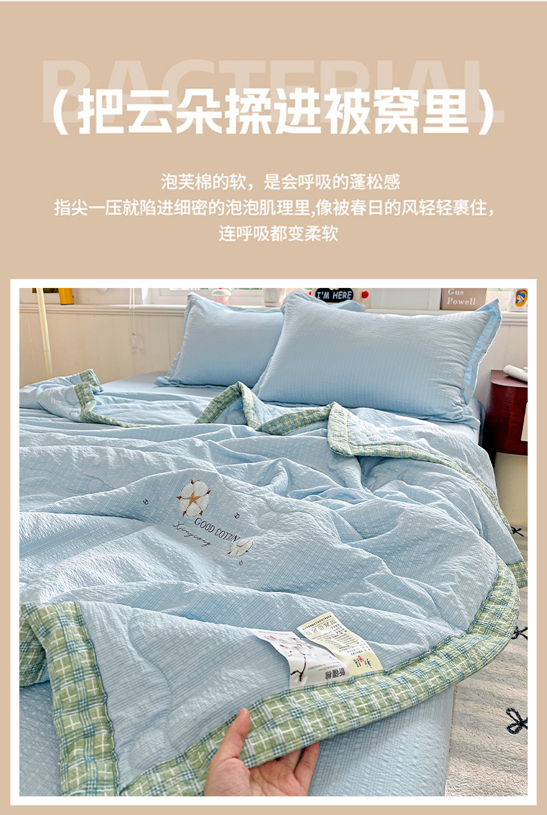 商品名称:优承佳生活馆 2026新款超柔泡芙棉烫画棉花夏被(提供买家秀) 泡芙-蓝