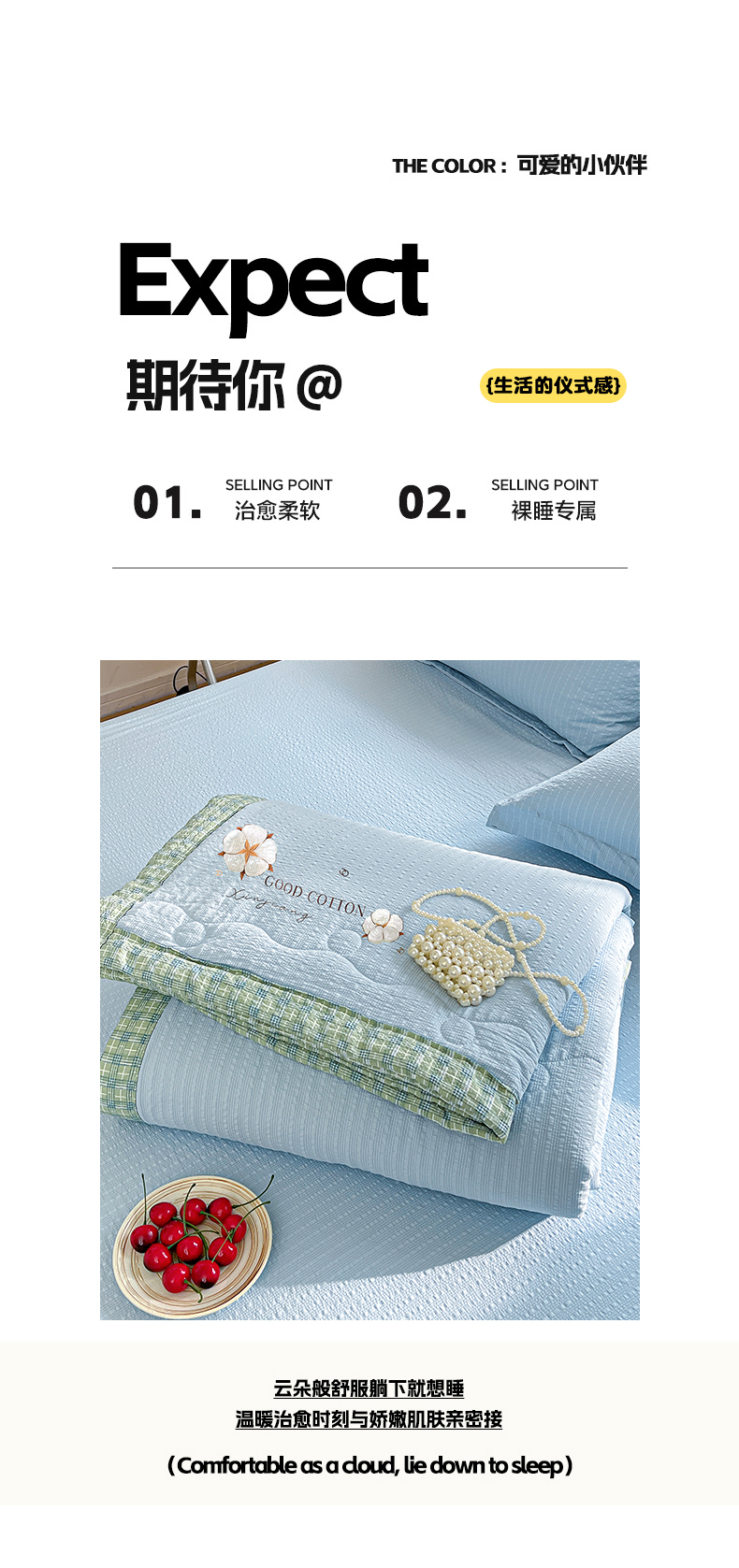 优承佳生活馆 2026新款超柔泡芙棉烫画棉花夏被(提供买家秀) 泡芙-蓝