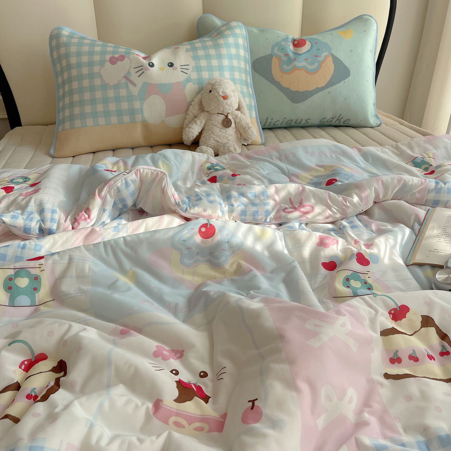 (总)顾里家纺 2026新款韩系少女凉感冰皮夏被夏凉被空调被-第二组(会员-3元),波点粉猫,蛋糕花猫,粉格花猫,猫咪时光,拼接猫咪,组合图仅供展示-不可下单