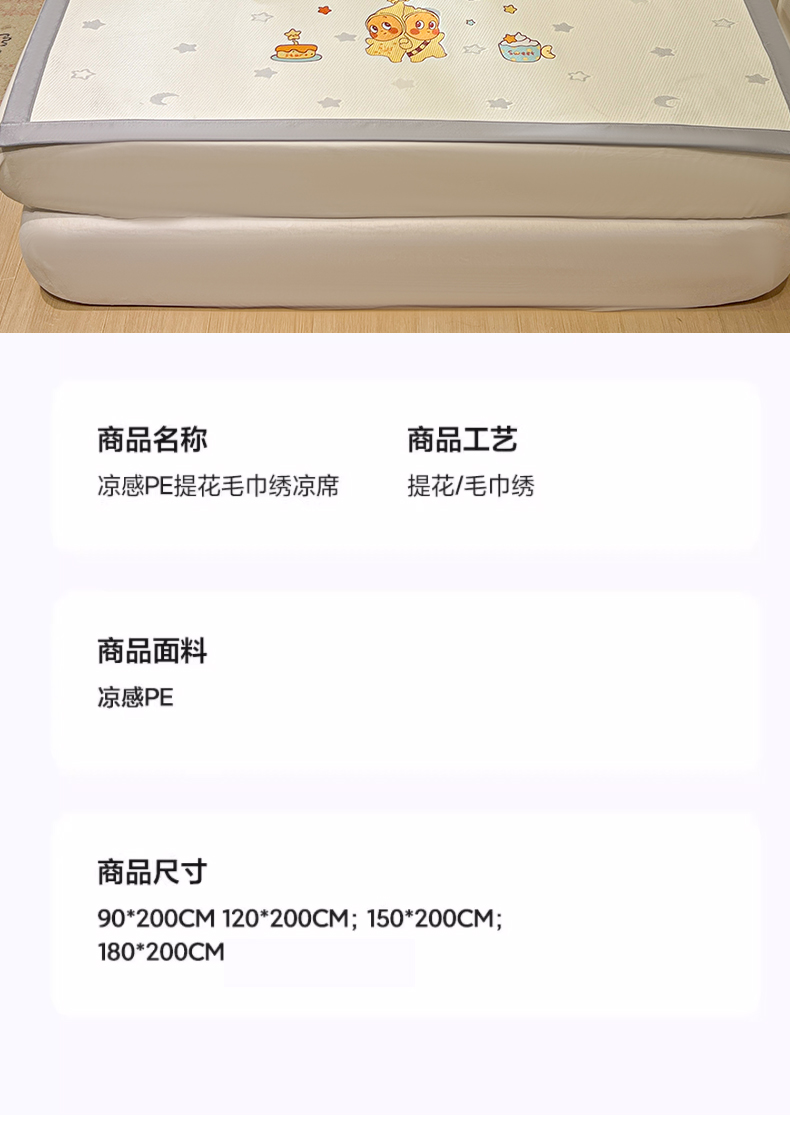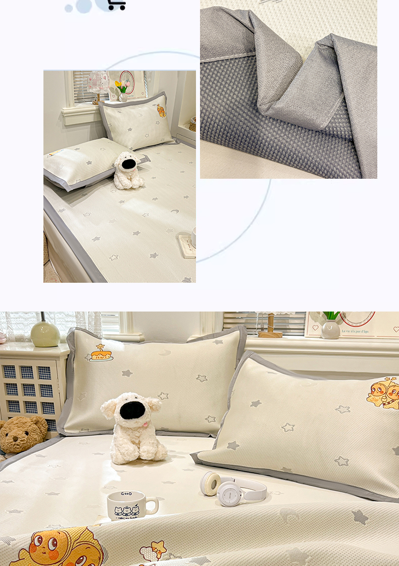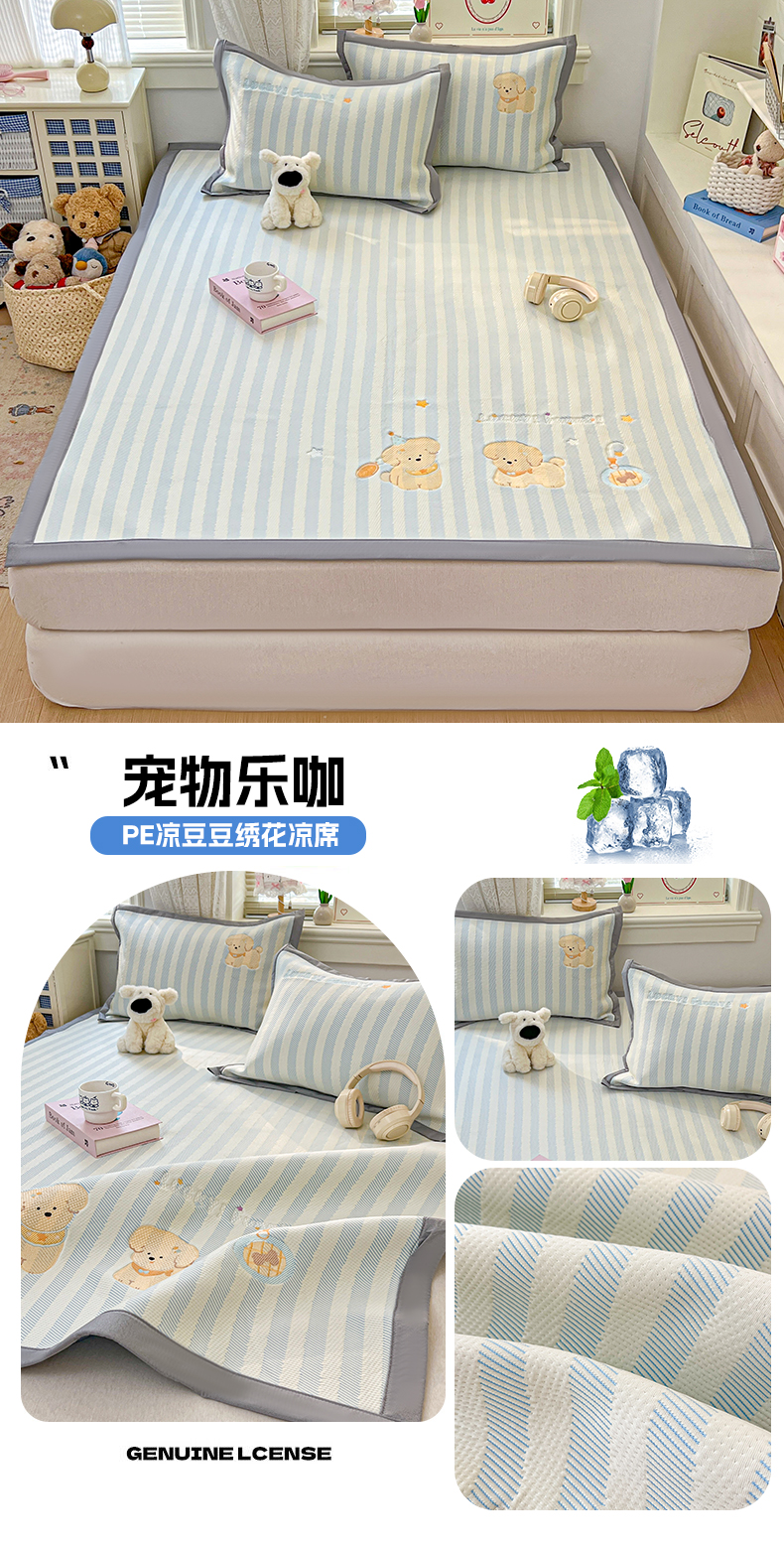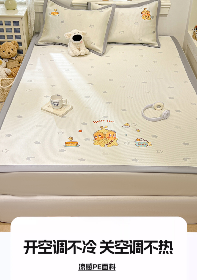(总)川悦生活 2026新款PE凉感提花豆豆席平铺款三件套,费尔冰雪,尼尔-粉,尼尔-星灰,朴朴小旺,甜心-奶粉,甜心-水蓝,甜心-月灰,甜心奶猫,夏季岛屿-粉,夏季岛屿-月银,星花小猫,月桂-月银,奶油星月,爱心猫咪-茶青,爱心猫咪-月白,清爽蓝调,小熊仔,樱桃果塔,沐月玫瑰-清粉
