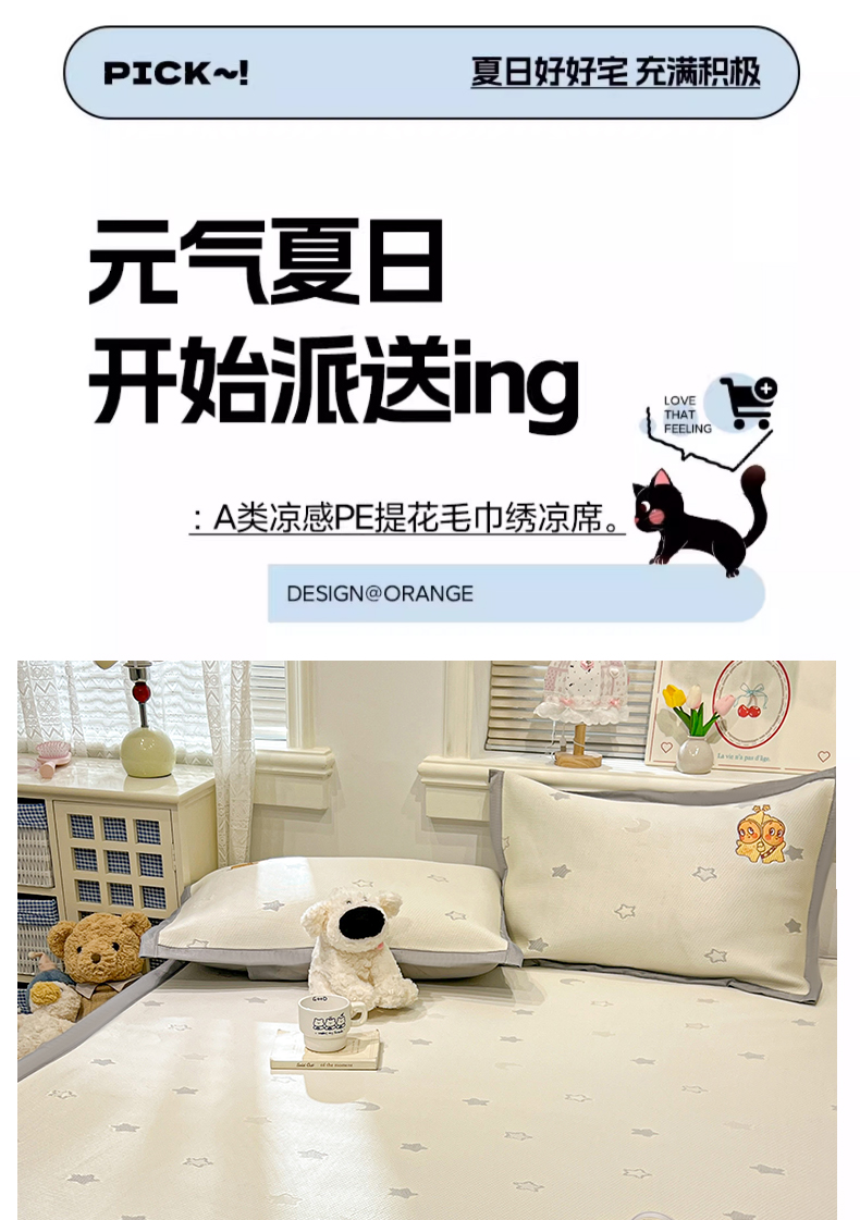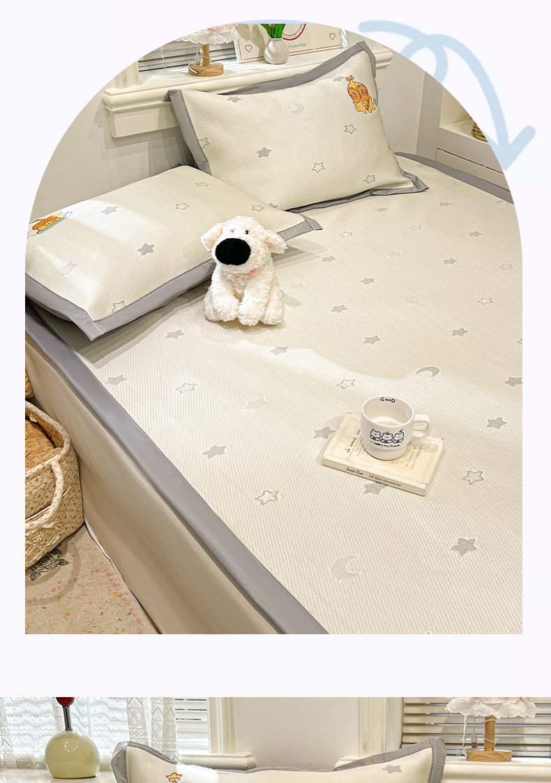 商品名称:川悦生活 2026新款凉感提花绣花豆豆席 星仔派对