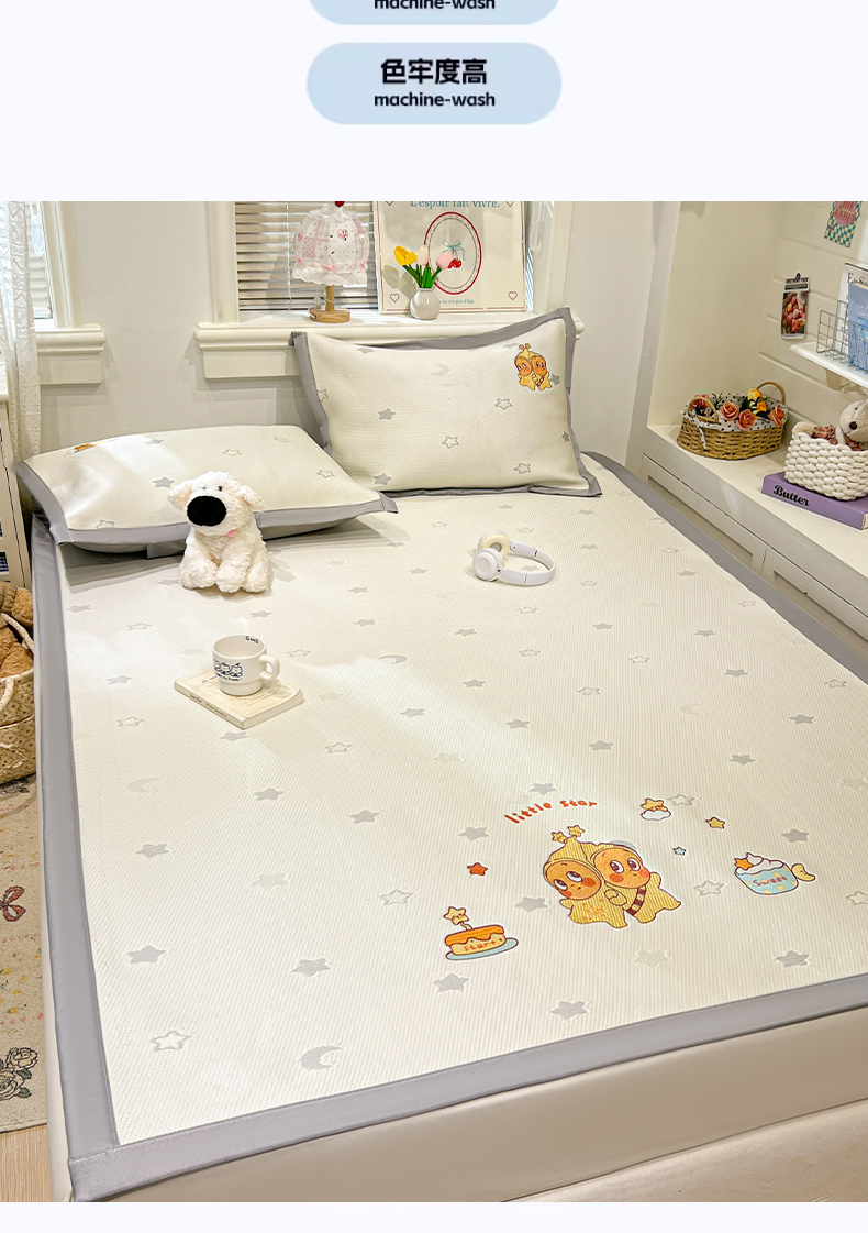 川悦生活 2026新款凉感冰丝席小阪凉感冰丝数码印花席学生床 席星星西高地,席星星西高地