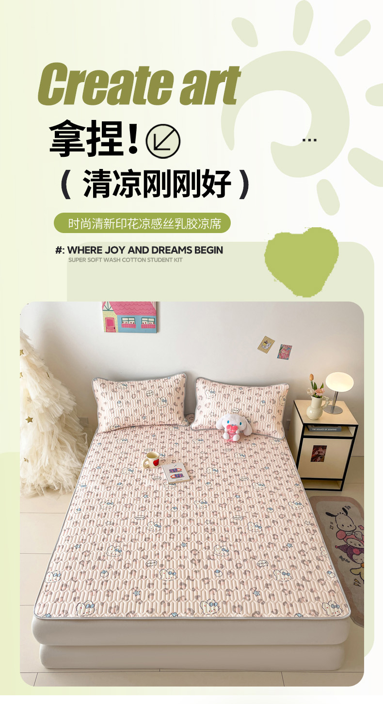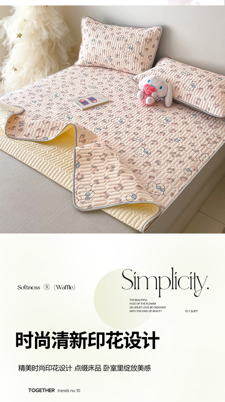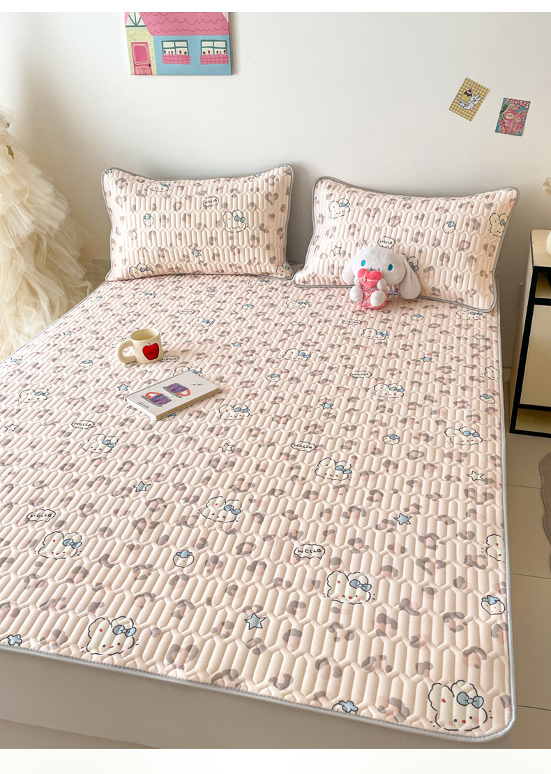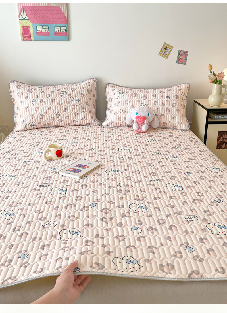 (总)沐慕 2026新款小清新凉感丝乳胶凉席三件套,爱心小兔,花花粉兔,萌萌鸭,萌宠礼物,豹纹小兔,萝莉猫,腊肠狗,粉格帽宠,三小只,森系兔,碎花小猫,糖果甜梦园,天使星星人,晚安拼格猫,樱桃萌猫,郁金香,云朵小熊