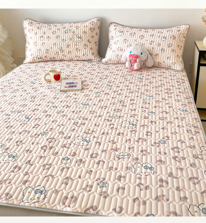 沐慕 2026新款小清新凉感丝乳胶凉席三件套 豹纹小兔