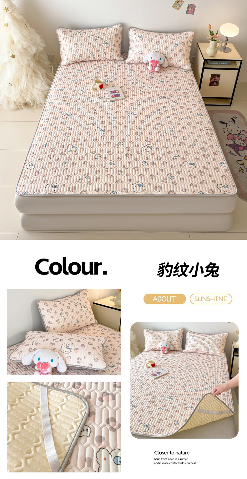商品名称:沐慕 2026新款小清新凉感丝乳胶凉席三件套 豹纹小兔