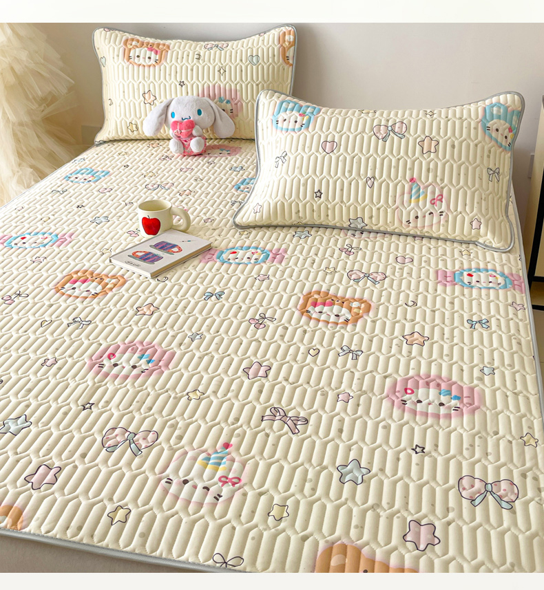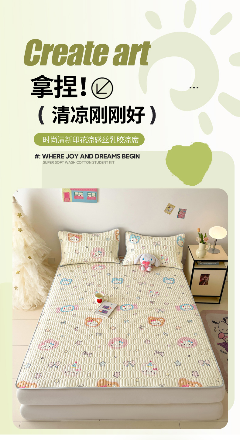 沐慕 2026新款小清新凉感丝乳胶凉席三件套 糖果甜梦园