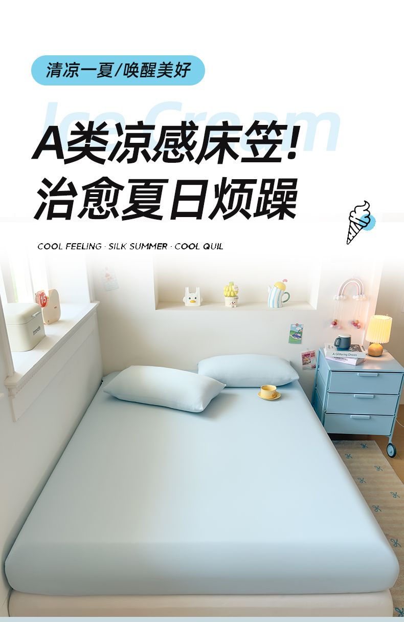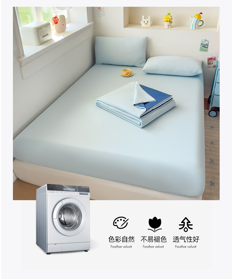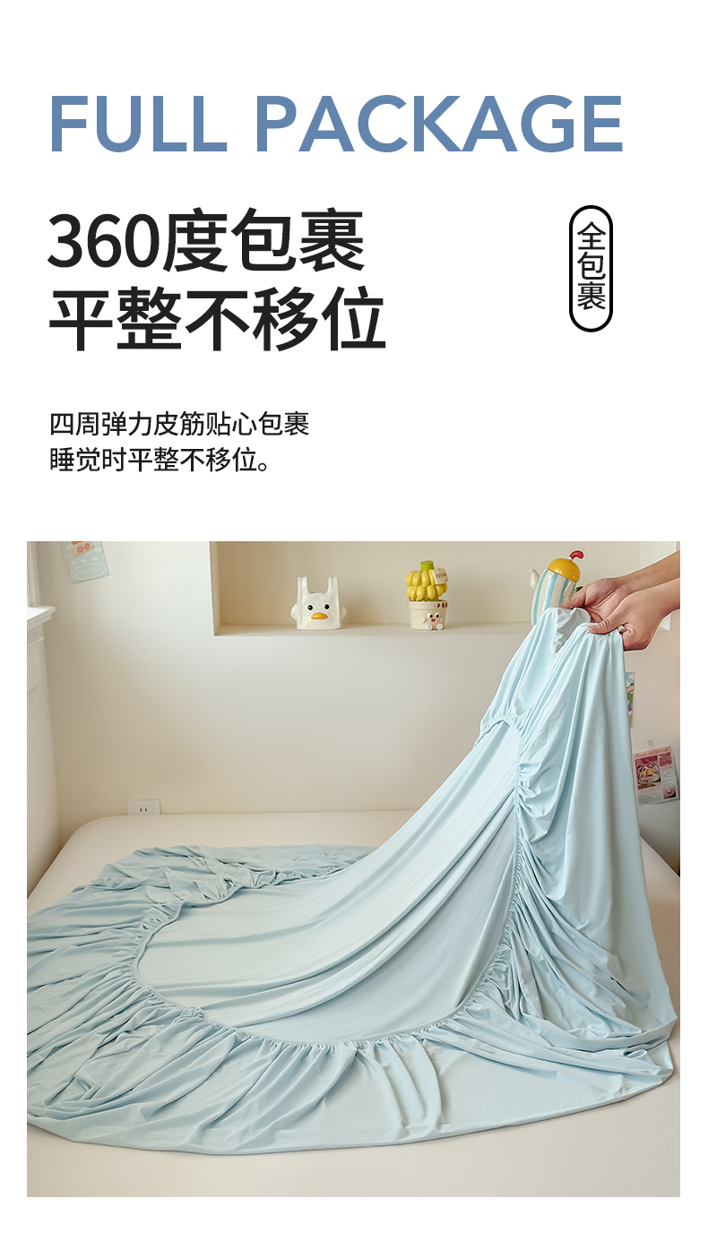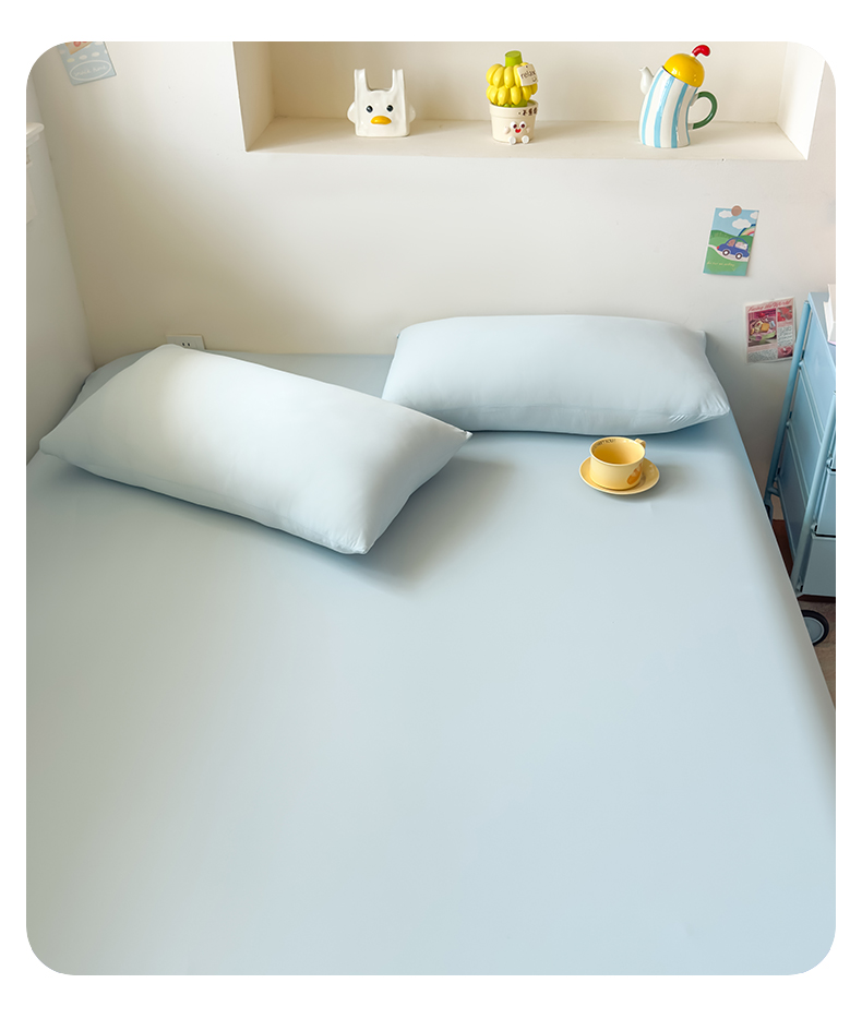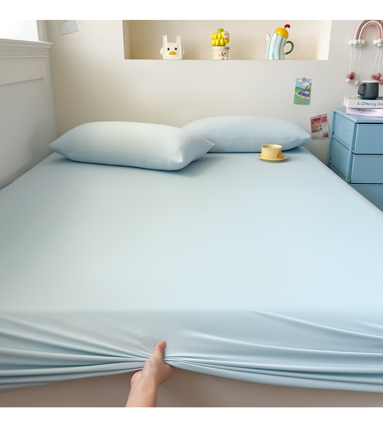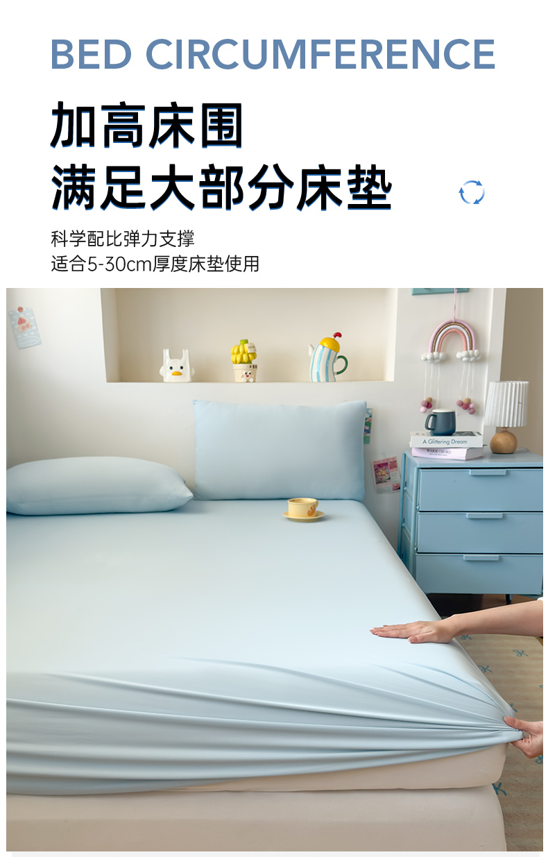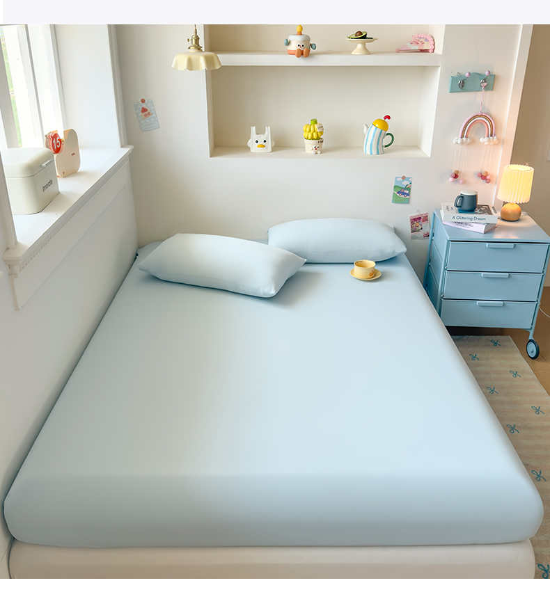 (总)大吉 2026新款纯色锦氨系列单床笠,深睡蓝,清月紫,摩卡咖,奶油白,天空蓝,薄荷绿,荔枝粉,本白,雪绒灰