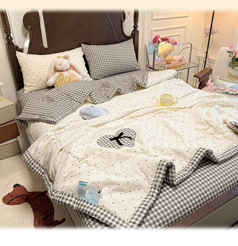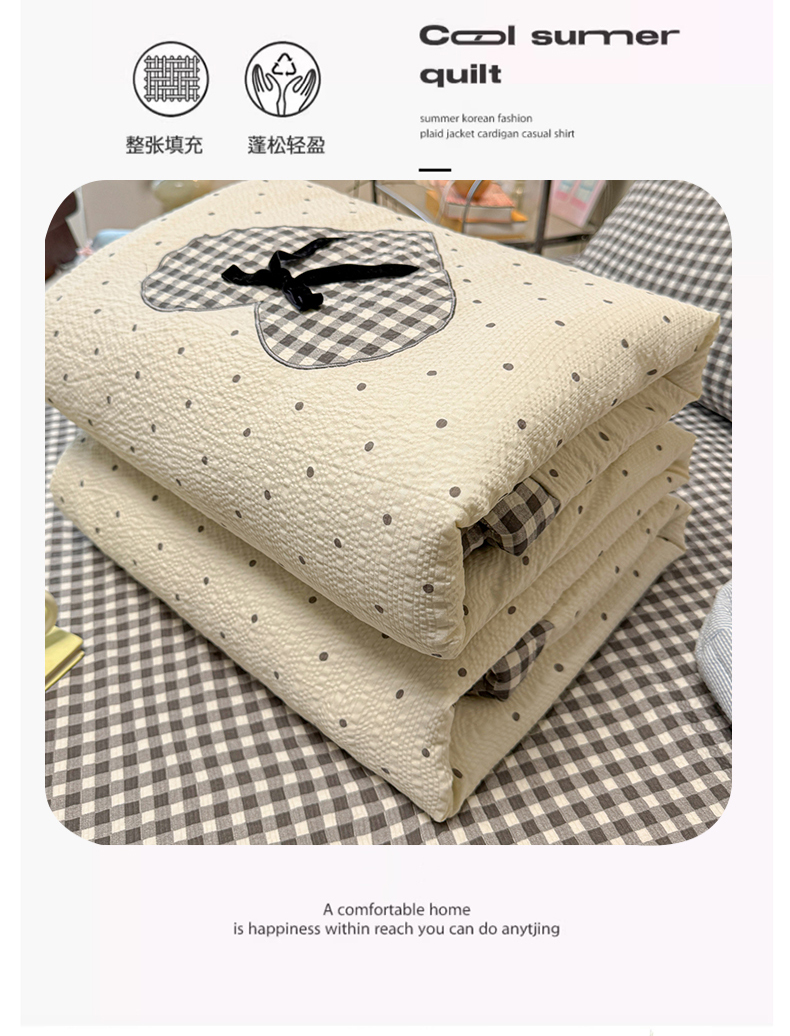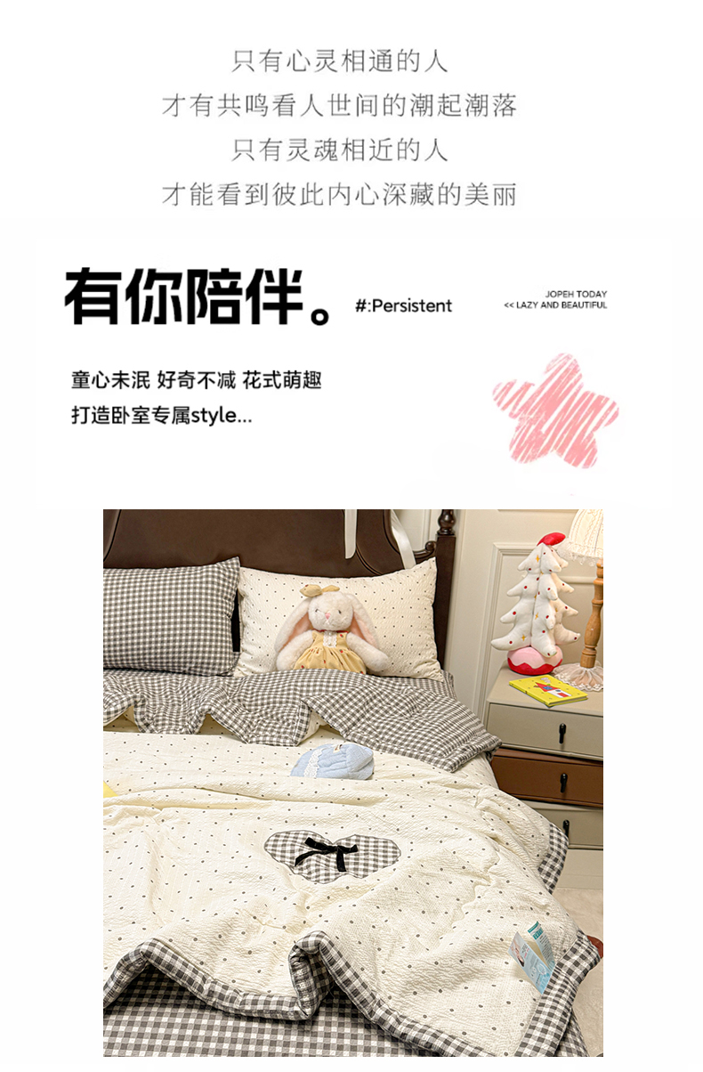 瑞禾家纺(原阿亮) 2026新款春夏新款提花泡芙棉贴布绣手包边单夏被夏被四件套-丘比特的爱恋 丘比特的爱恋-奶黑波点+黑小格
