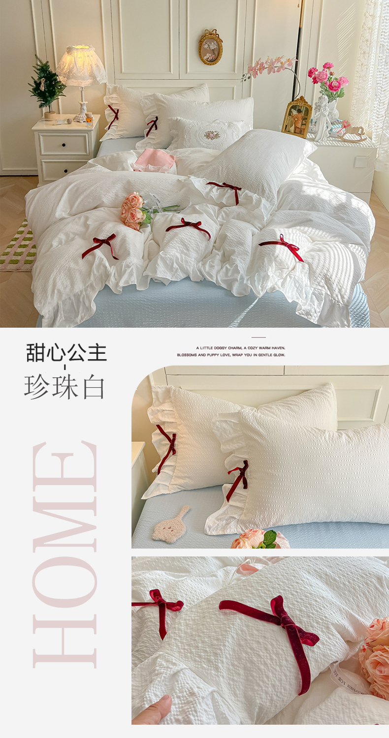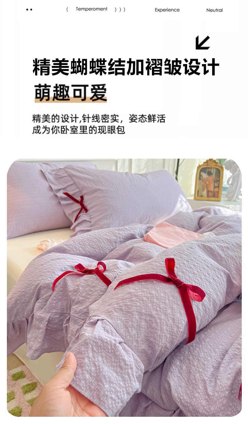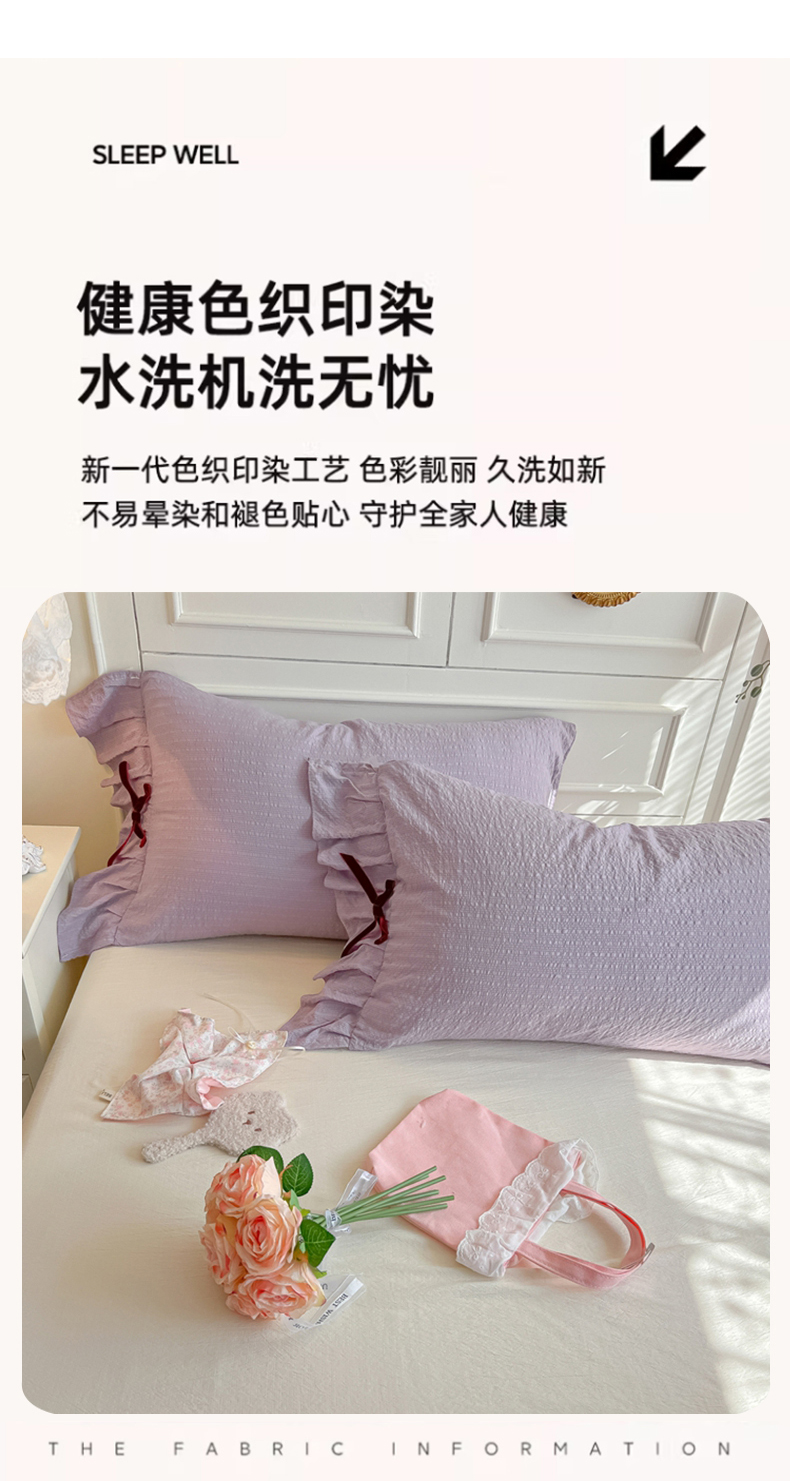 当前位置: 91家纺网 > 商品网购 > 床品套件 > 四件套 > 其它四件套 > 瑞禾家纺(原阿亮) 2026春夏新款提花泡芙棉花边蝴蝶结床单床笠四件套-甜心公主 甜心公主-阳光紫