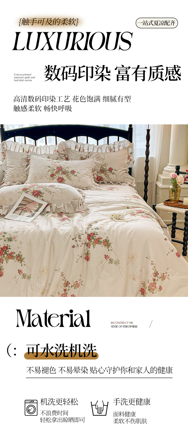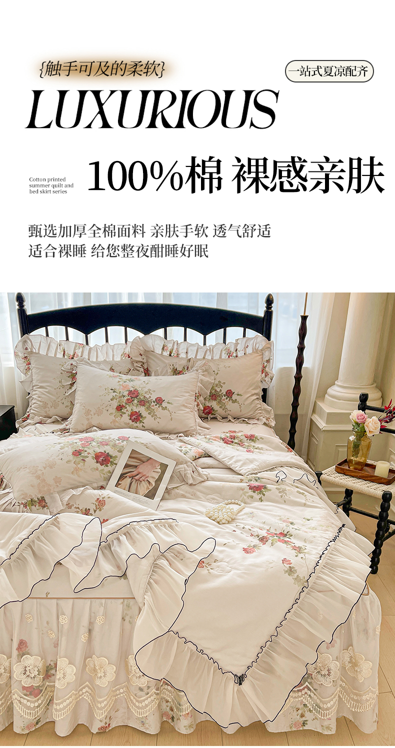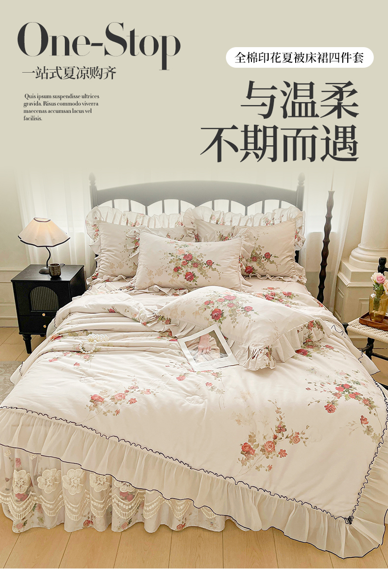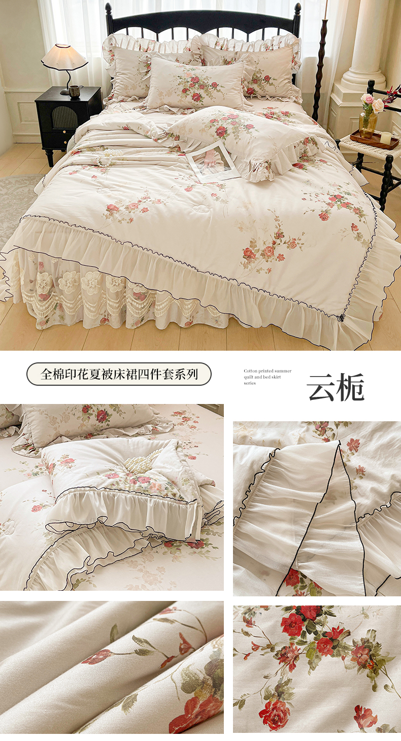 宜凡家纺 2026新款全棉数码印花夏被床裙四件套①号系列 云栀
