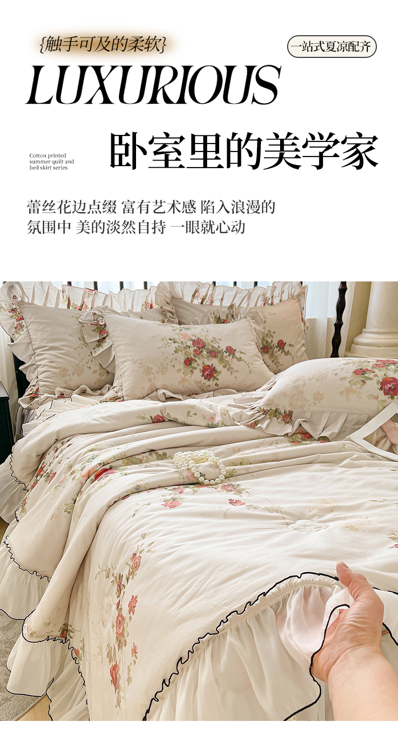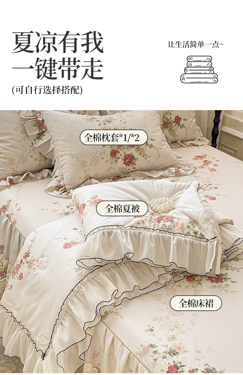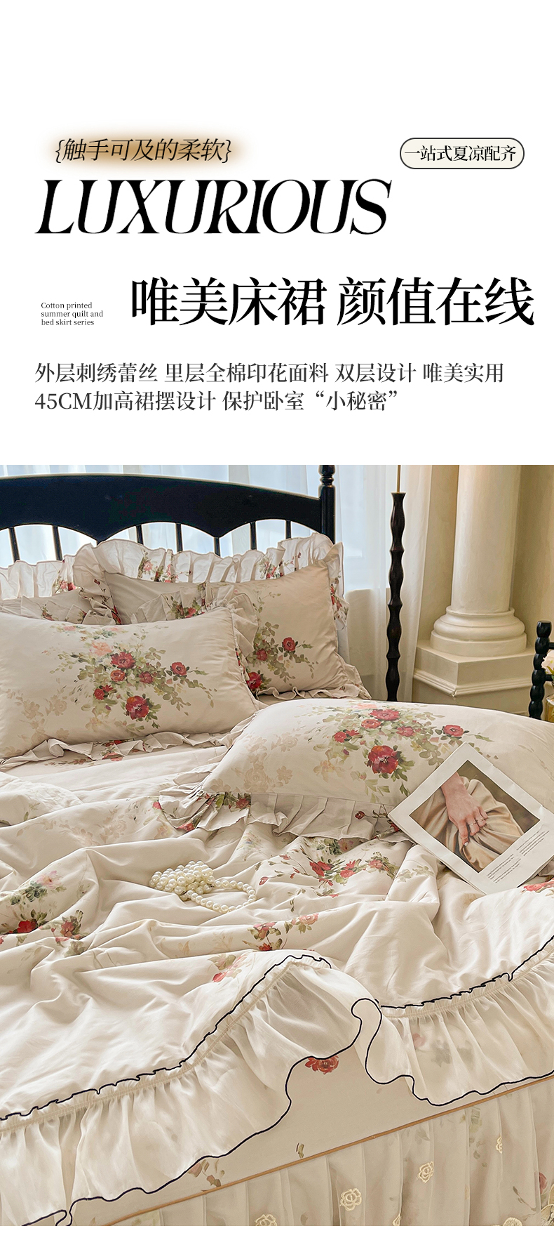 宜凡家纺 2026新款全棉数码印花夏被床裙四件套①号系列 云栀