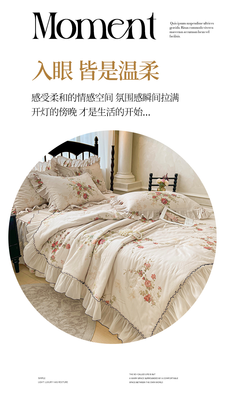 (总)宜凡家纺 2025新款全棉数码印花床裙四件套系列二,繁花似锦,春景熙熙,花间密语,花间柔光,满芯花溪,迷离夜色,婉如初见,雪域森林