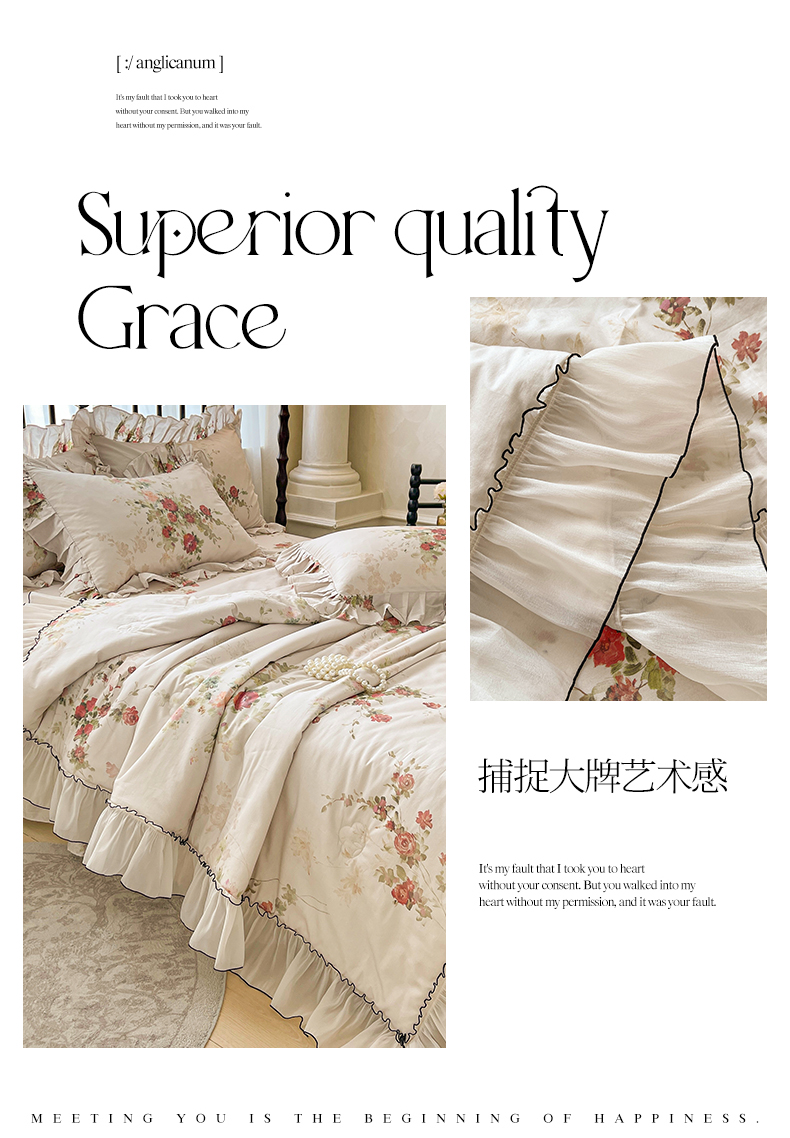 (总)宜凡家纺 2025新款全棉数码印花床裙四件套系列一,静若幽兰,浮云织梦,梦幻花园,陌上花开