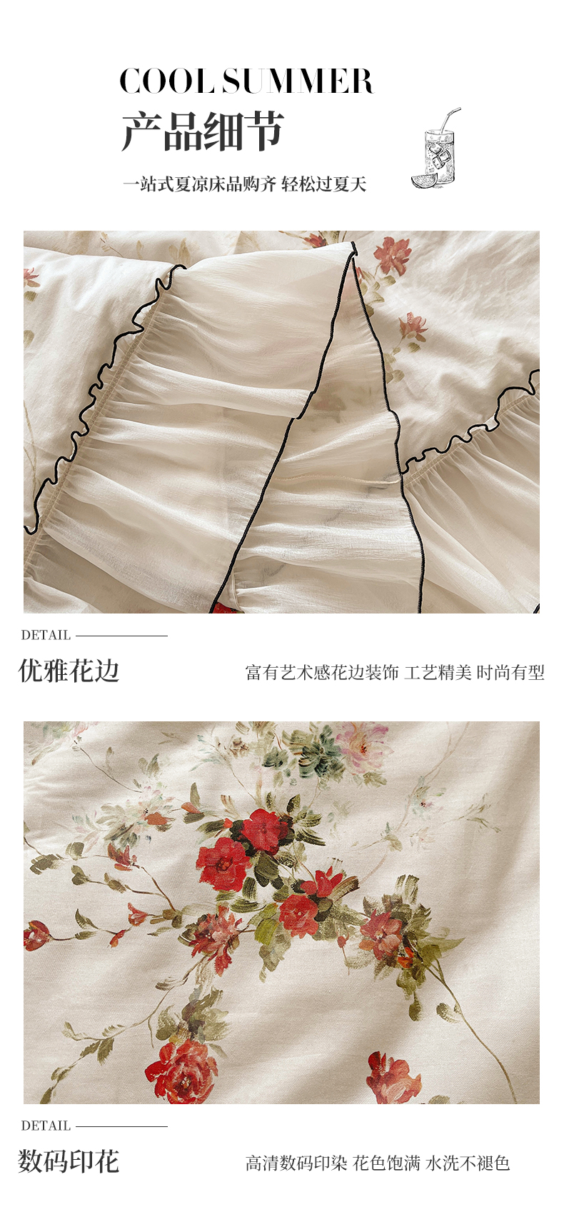 商品名称:宜凡家纺 2026新款全棉数码印花夏被床裙四件套①号系列 云栀