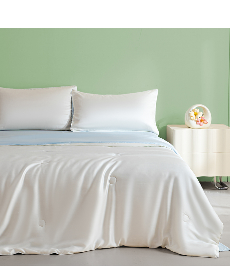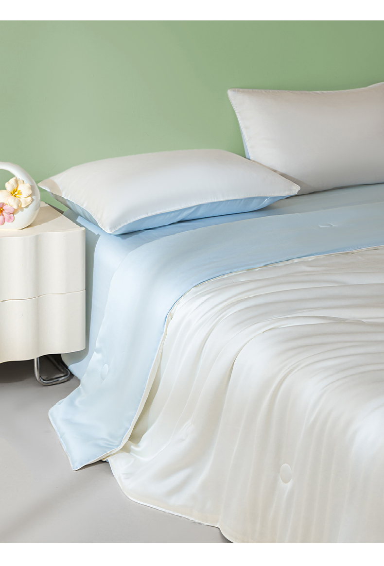 • 91家纺网 家纺一手货源 找家纺 云棉坊 2026新款水洗冰丝滚边款夏被-双拼系列 双拼-贵族白+天空蓝