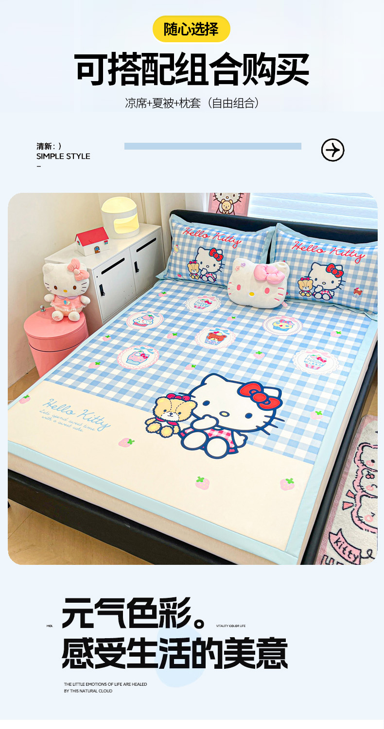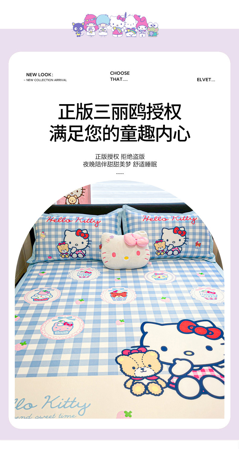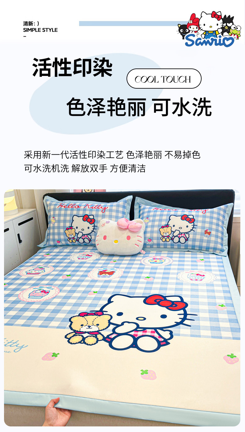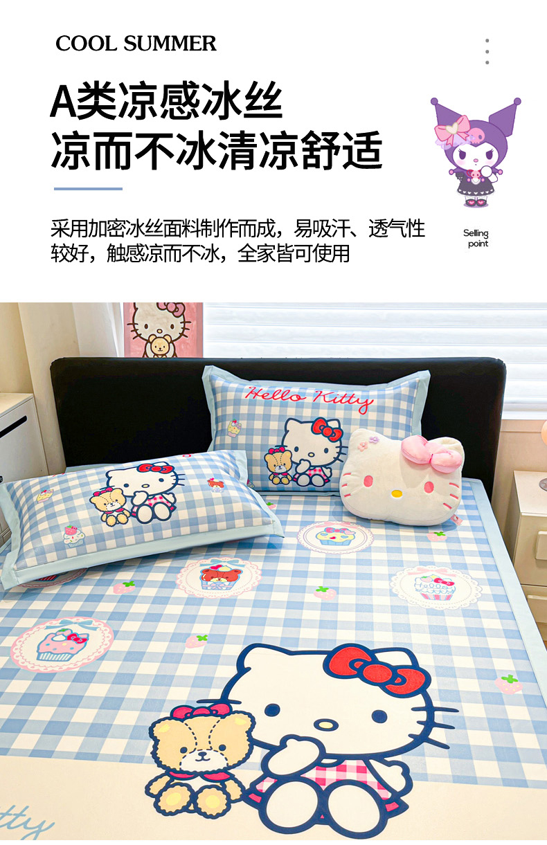 当前位置: 91家纺网 > 商品网购 > 床上用品 > 凉席 > 冰丝席 > 暮思家居 2026新款正版授权A类大版数码印花三丽鸥1200D冰丝凉席可组合仿锦氨夏被 平铺款-格子KT