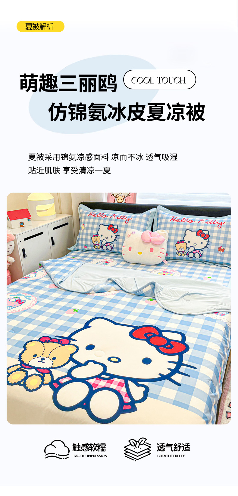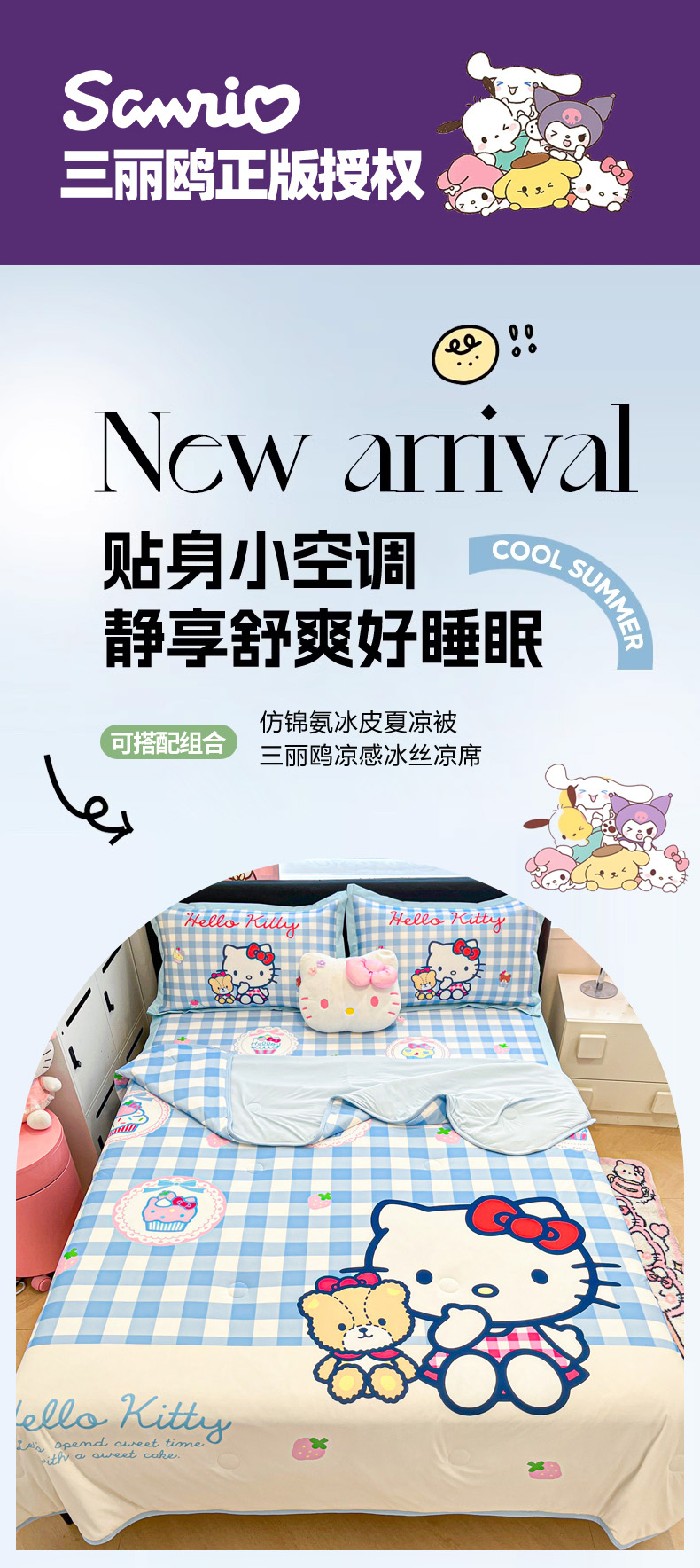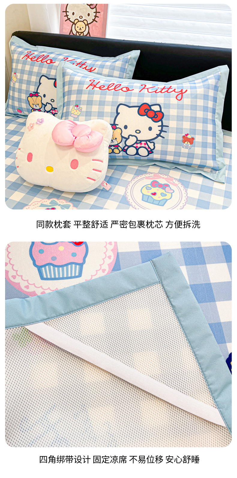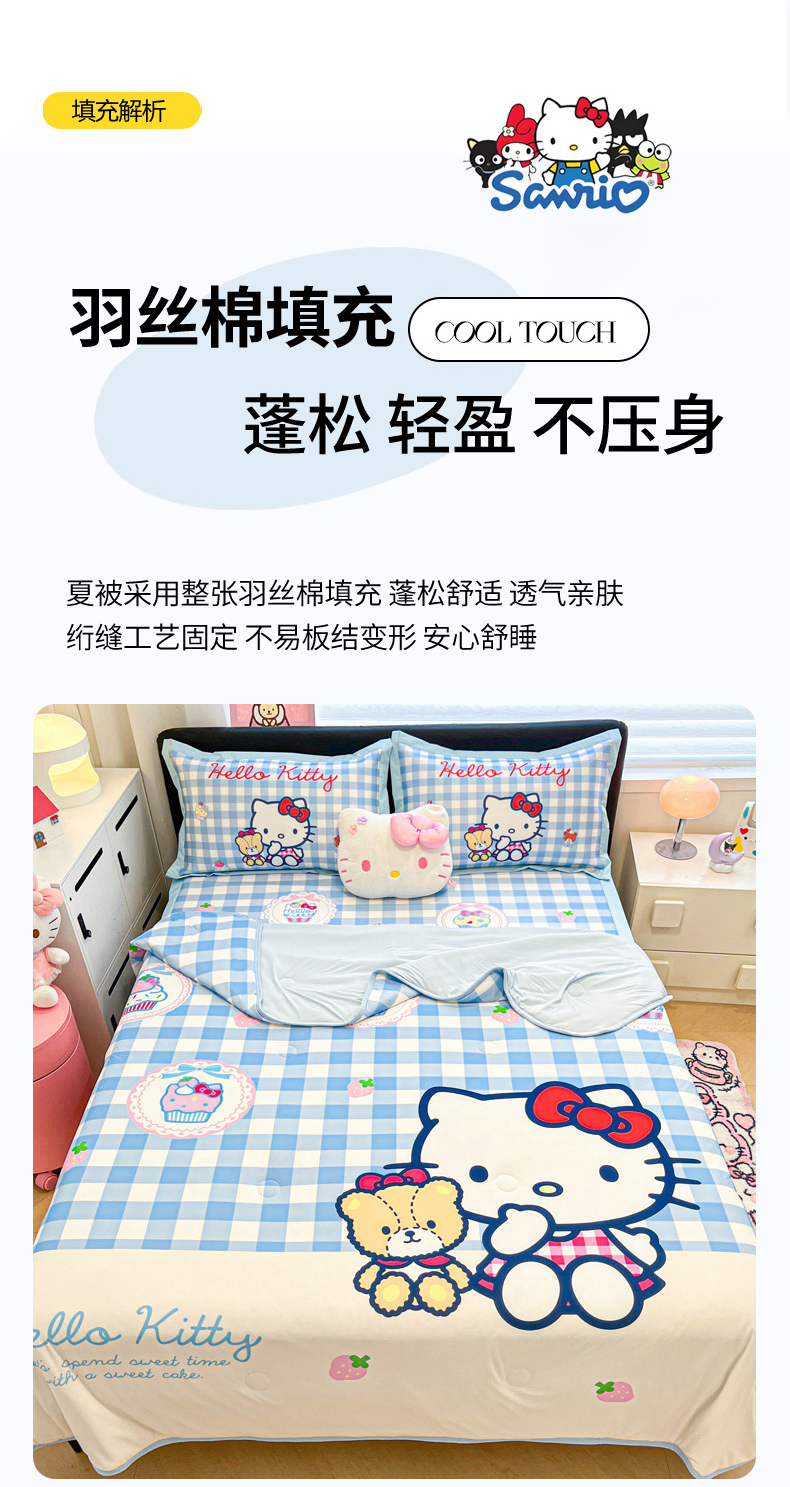 当前位置: 91家纺网 > 商品网购 > 床上用品 > 凉席 > 冰丝席 > 暮思家居 2026新款正版授权A类大版数码印花三丽鸥1200D冰丝凉席可组合仿锦氨夏被 平铺款-格子KT