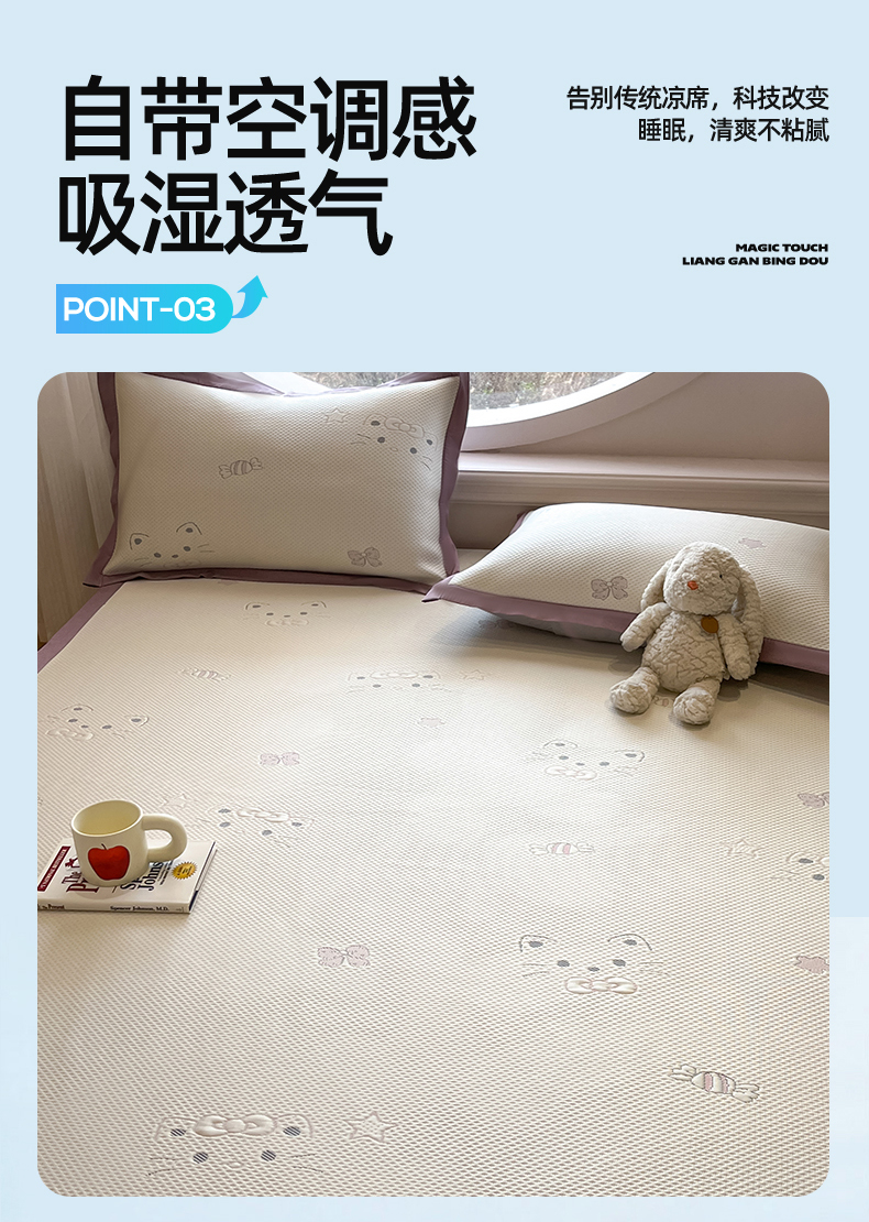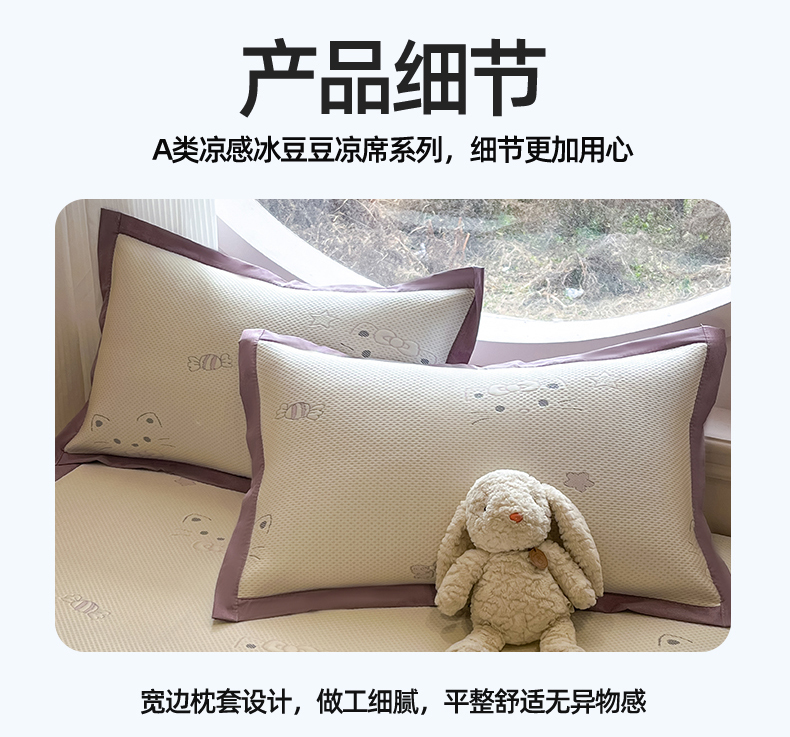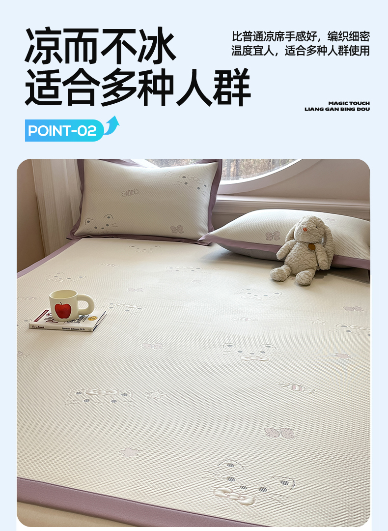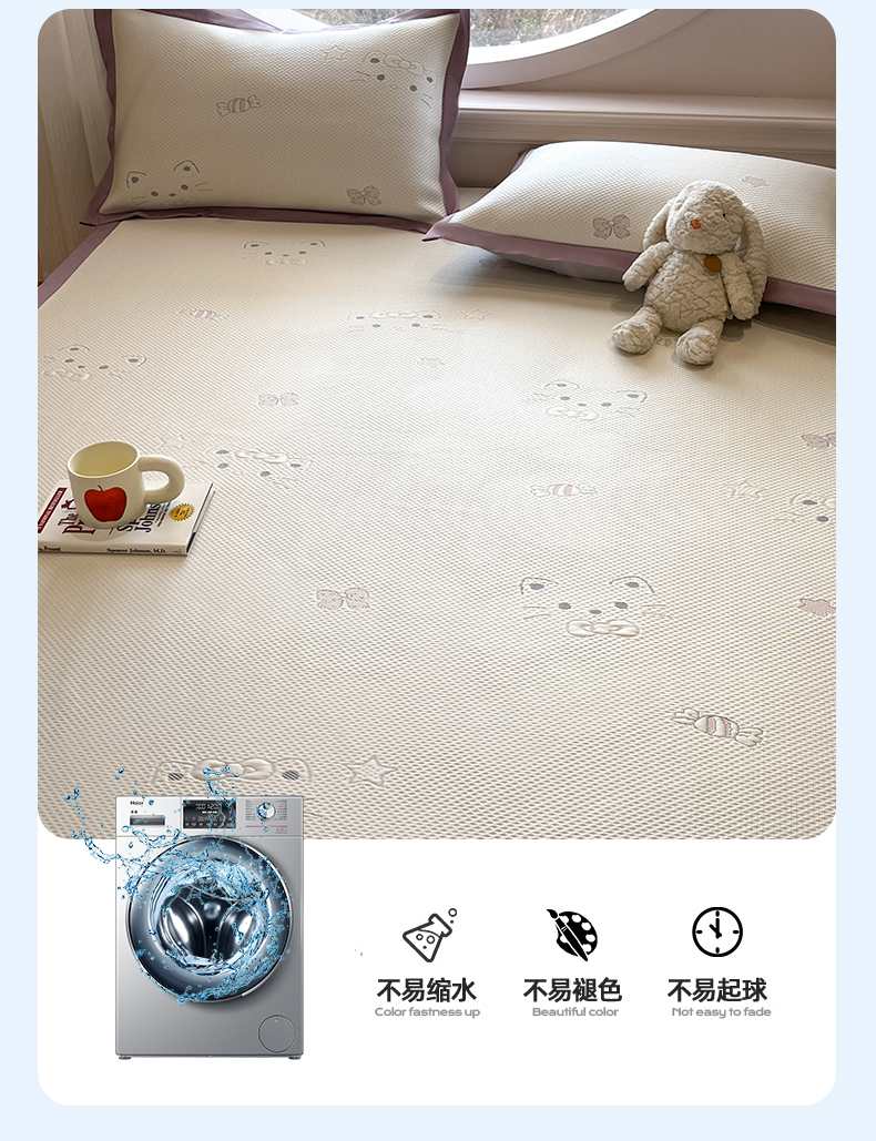 商品名称:天之澜家纺 2026新款PE凉豆豆凉席小红书热卖款A类冰豆豆凉席三件套可水洗豆豆凉席-床席款 小喵喵