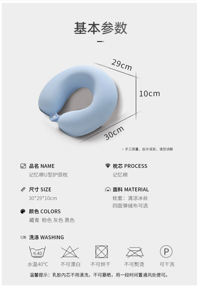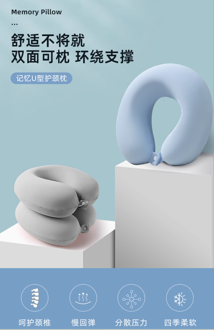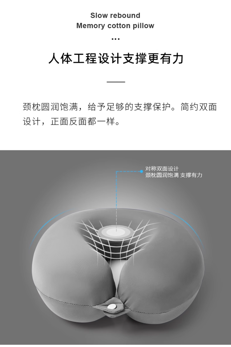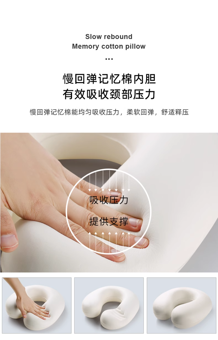 商品名称:土多多枕芯 2026新款凉感冰丝记忆棉U型护颈枕差旅便携护颈枕头枕芯-纯色系列 纯色深烟灰