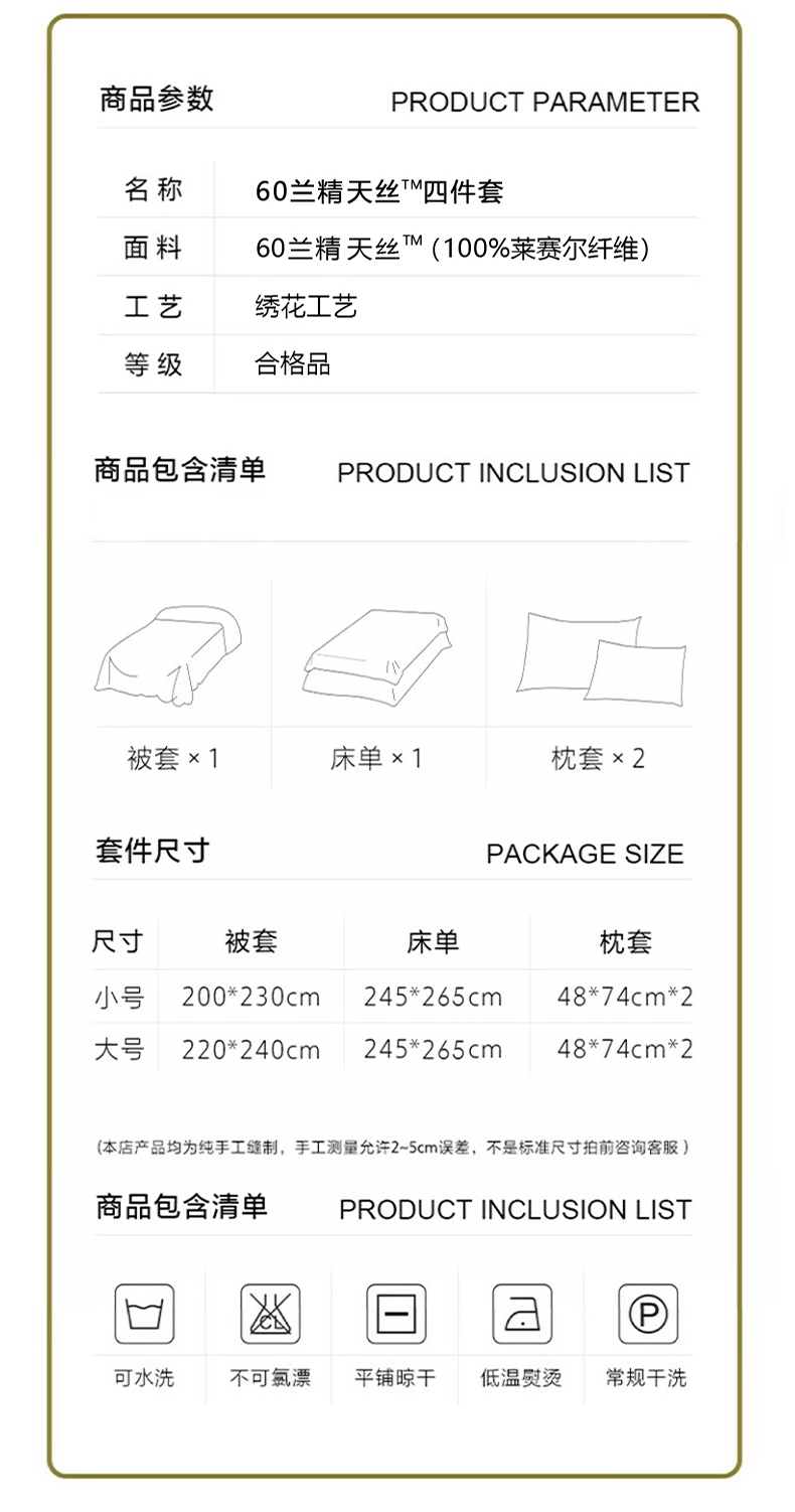 商品名称:(总)波比可可 2026春夏新款60支莱赛尔兰精天丝绣花刺绣四件套