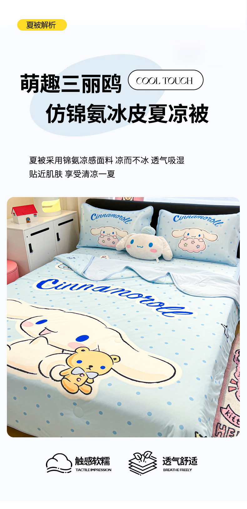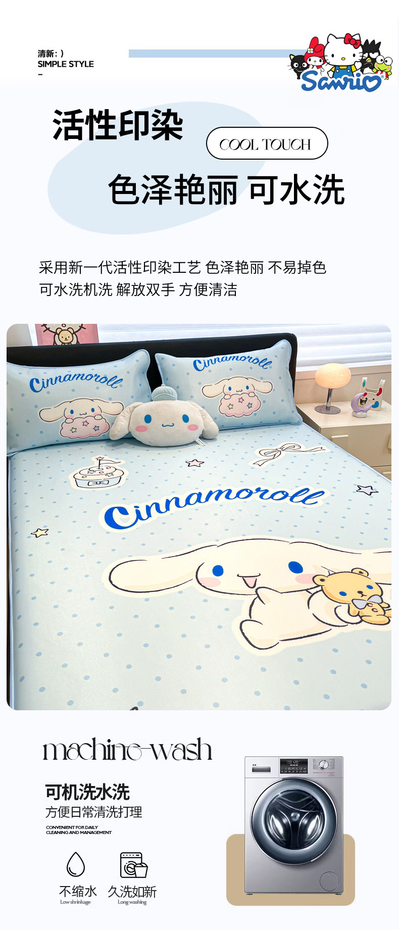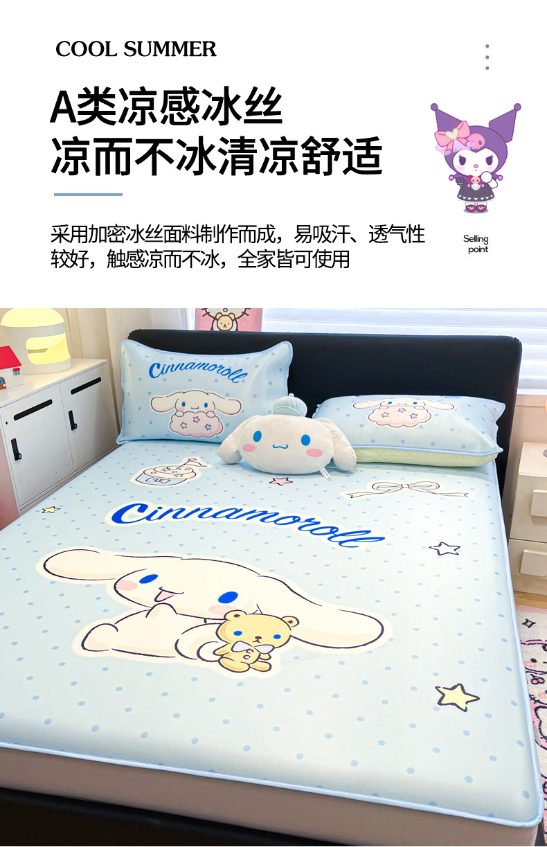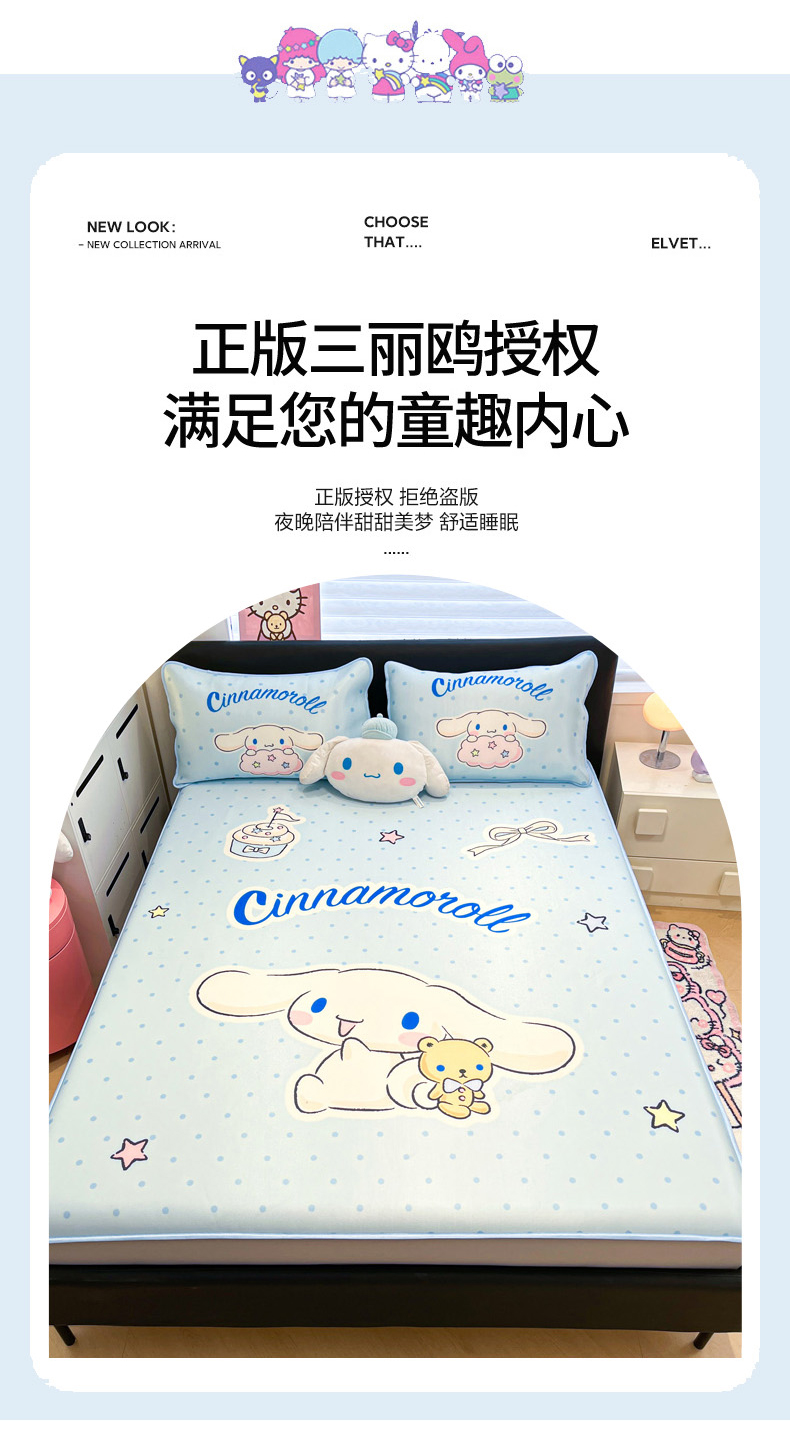 当前位置: 91家纺网 > 商品网购 > 床上用品 > 凉席 > 冰丝席 > 暮思家居 2026新款正版授权A类大版数码印花三丽鸥1200D冰丝凉席可组合仿锦氨夏被 床笠款-小熊玉桂狗