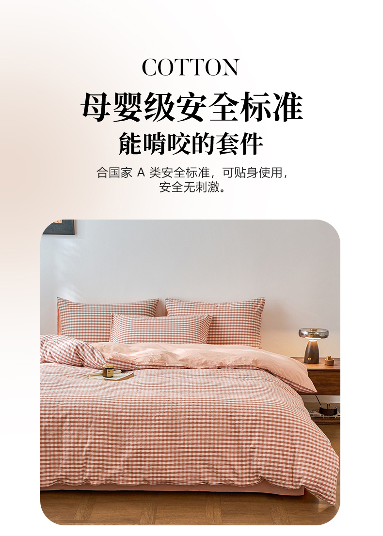 当前位置: 91家纺网 > 商品网购 > 床品套件 > 四件套 > 全棉普通四件套 > 春皖家纺 2026春夏新款全棉纯棉水洗棉四件套 素雅-玉格