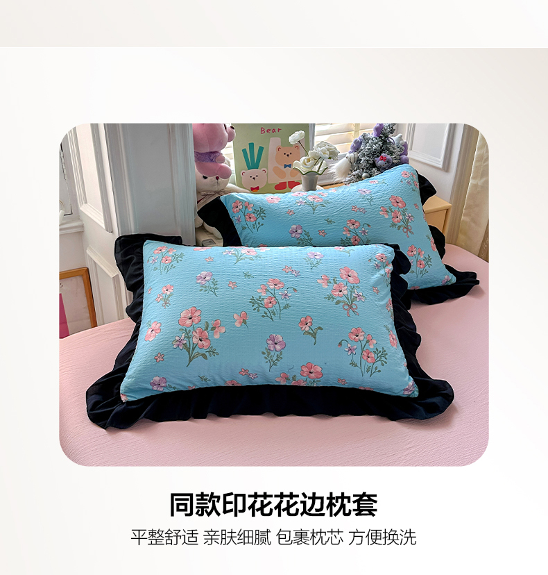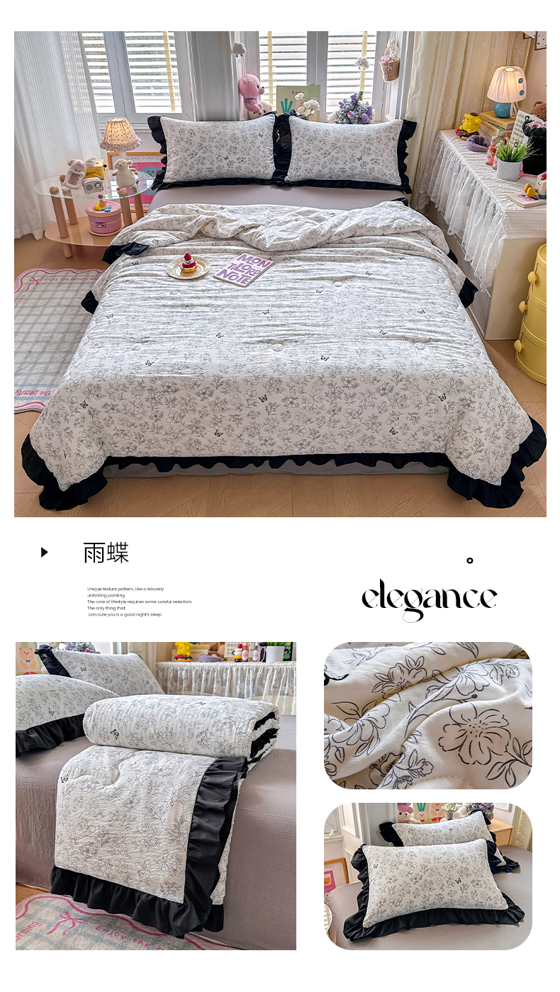 优卡迪家纺馆 2026新款皱皱棉黑花边夏被四件套下载文件包含买家秀 泡沫之夏(花边款)