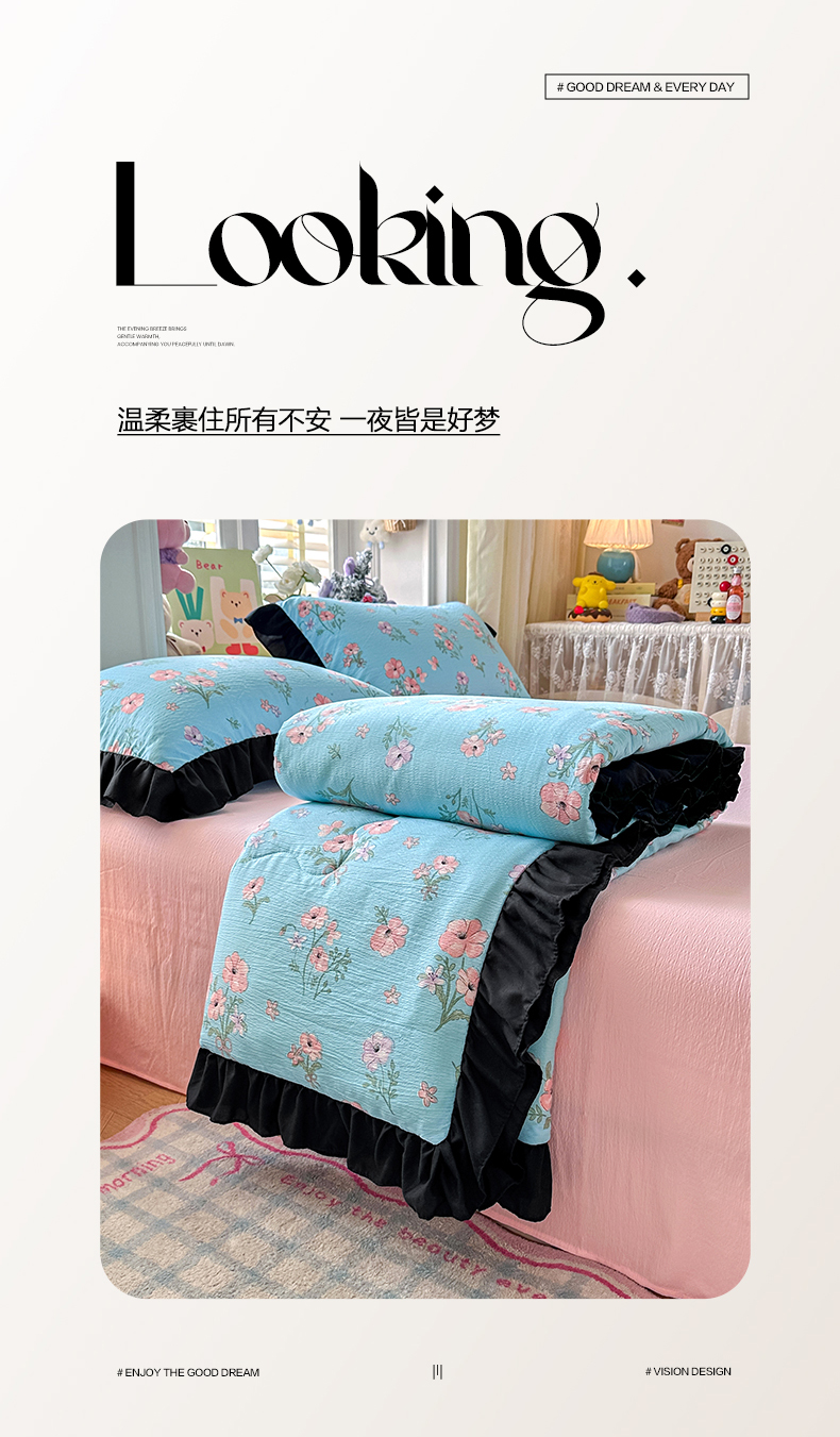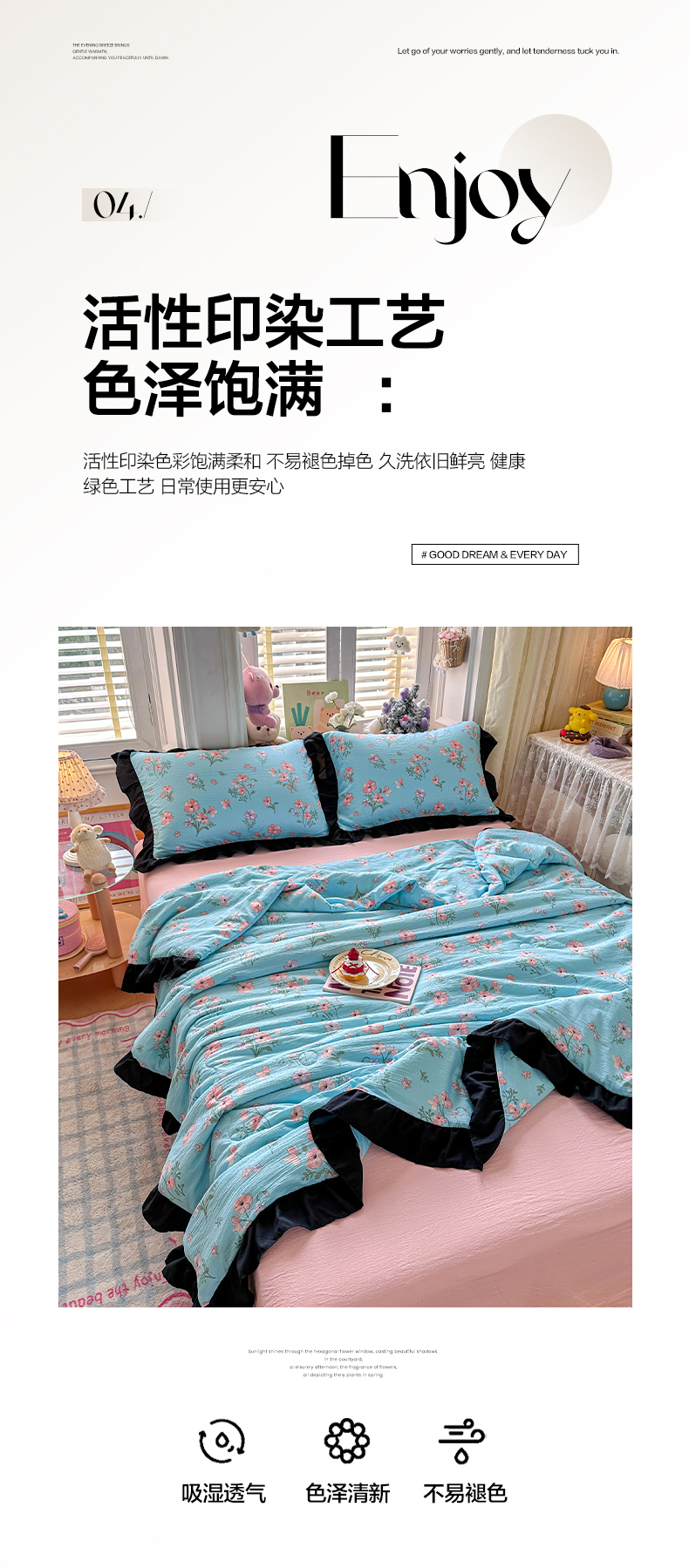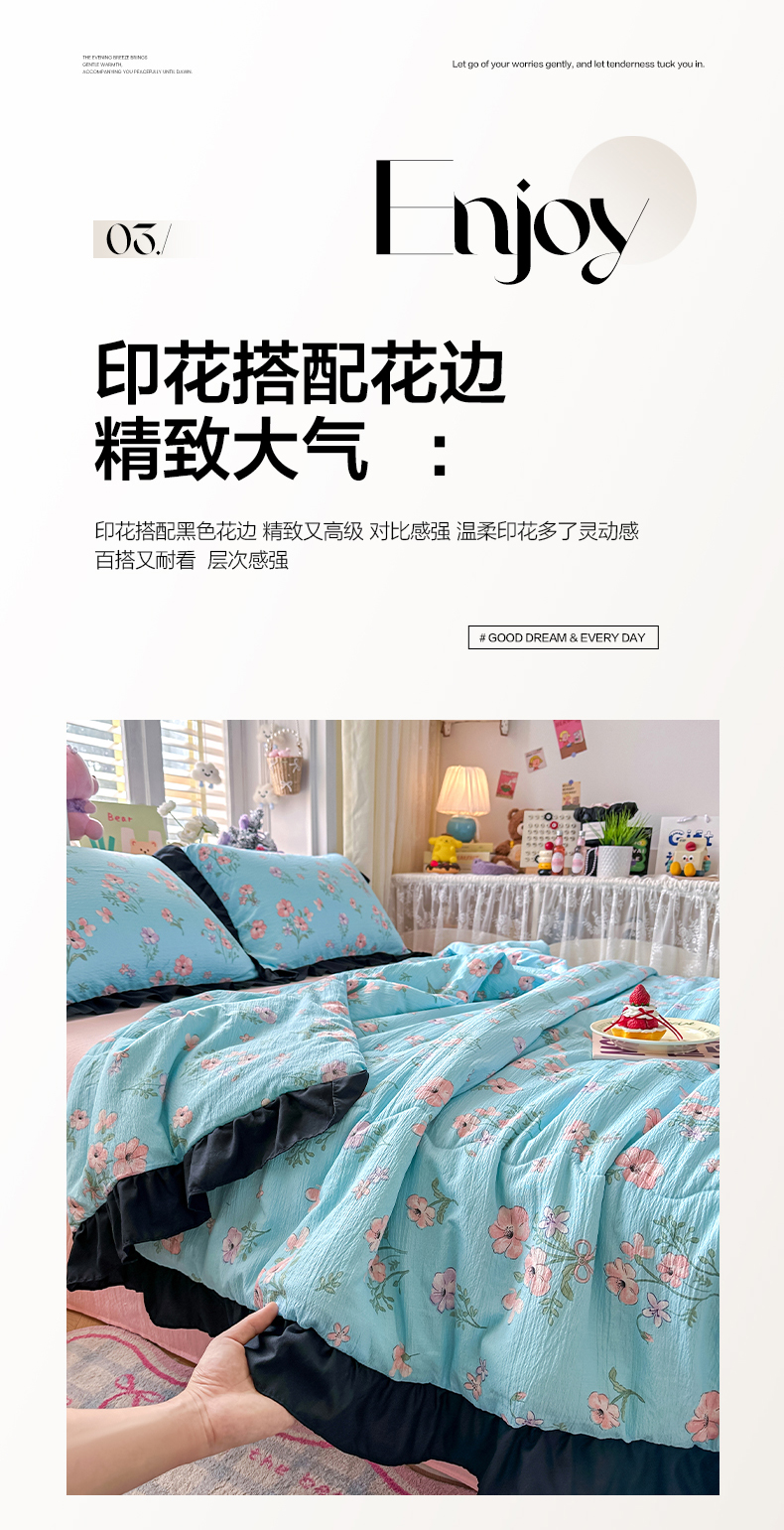 • 91家纺网 家纺一手货源 找家纺 优卡迪家纺馆 2026新款皱皱棉黑花边夏被四件套下载文件包含买家秀 泡沫之夏(花边款)