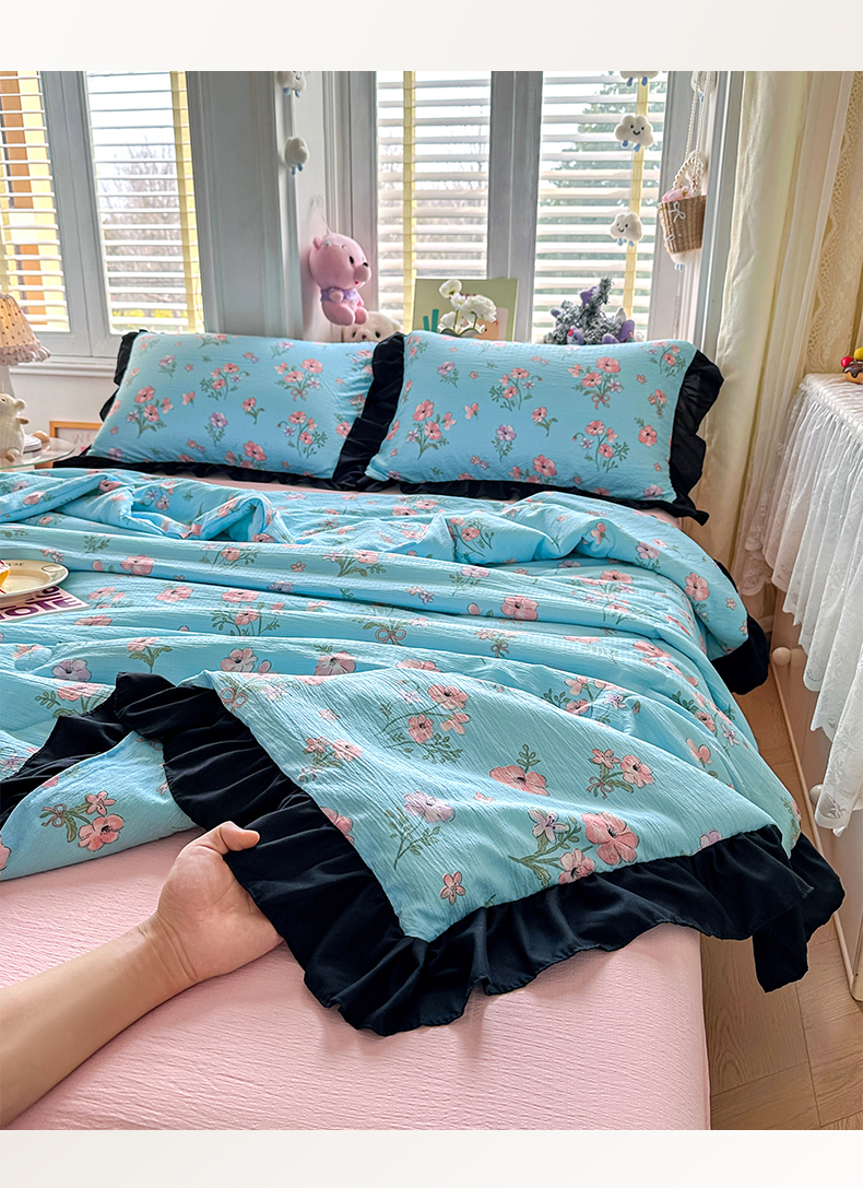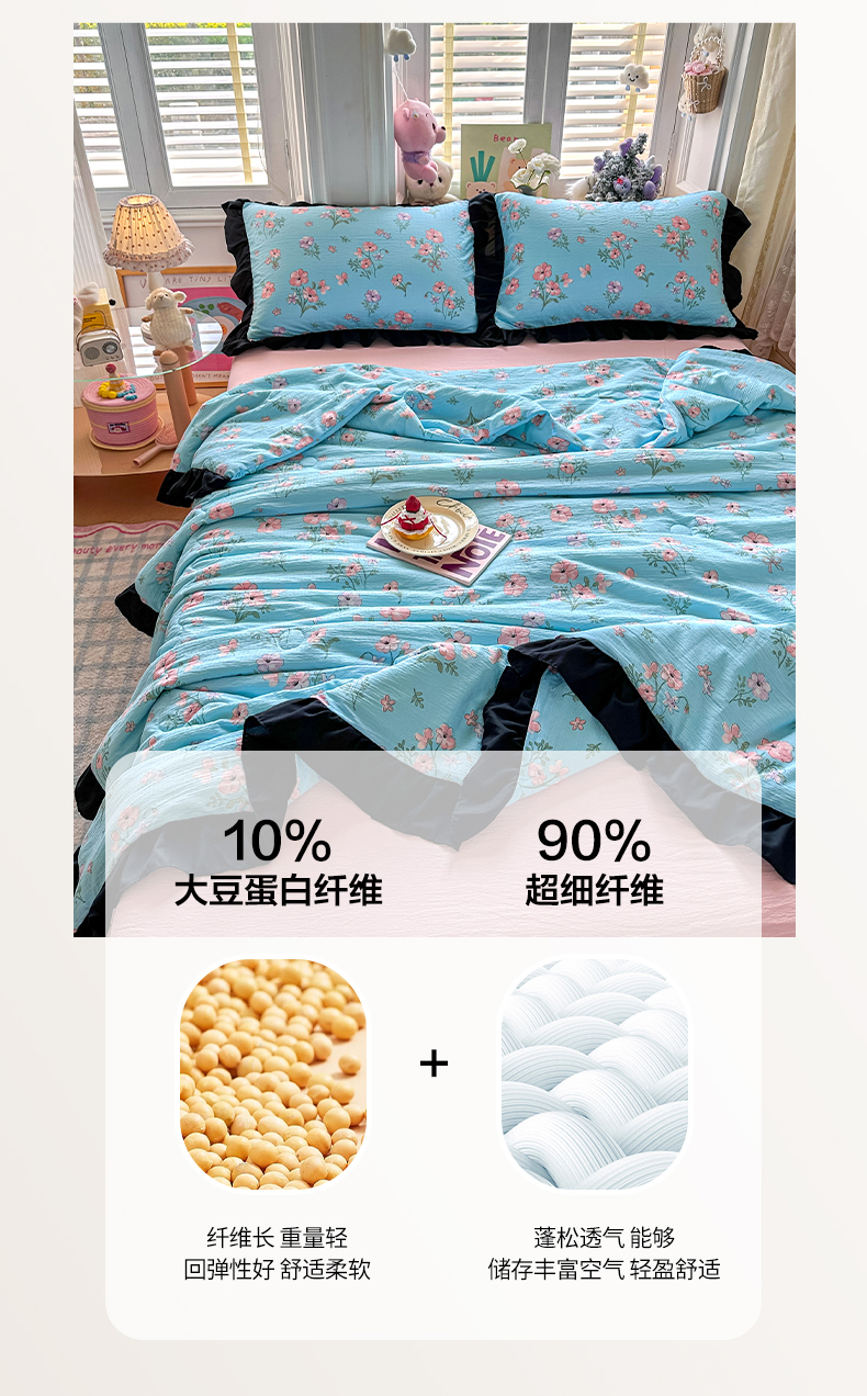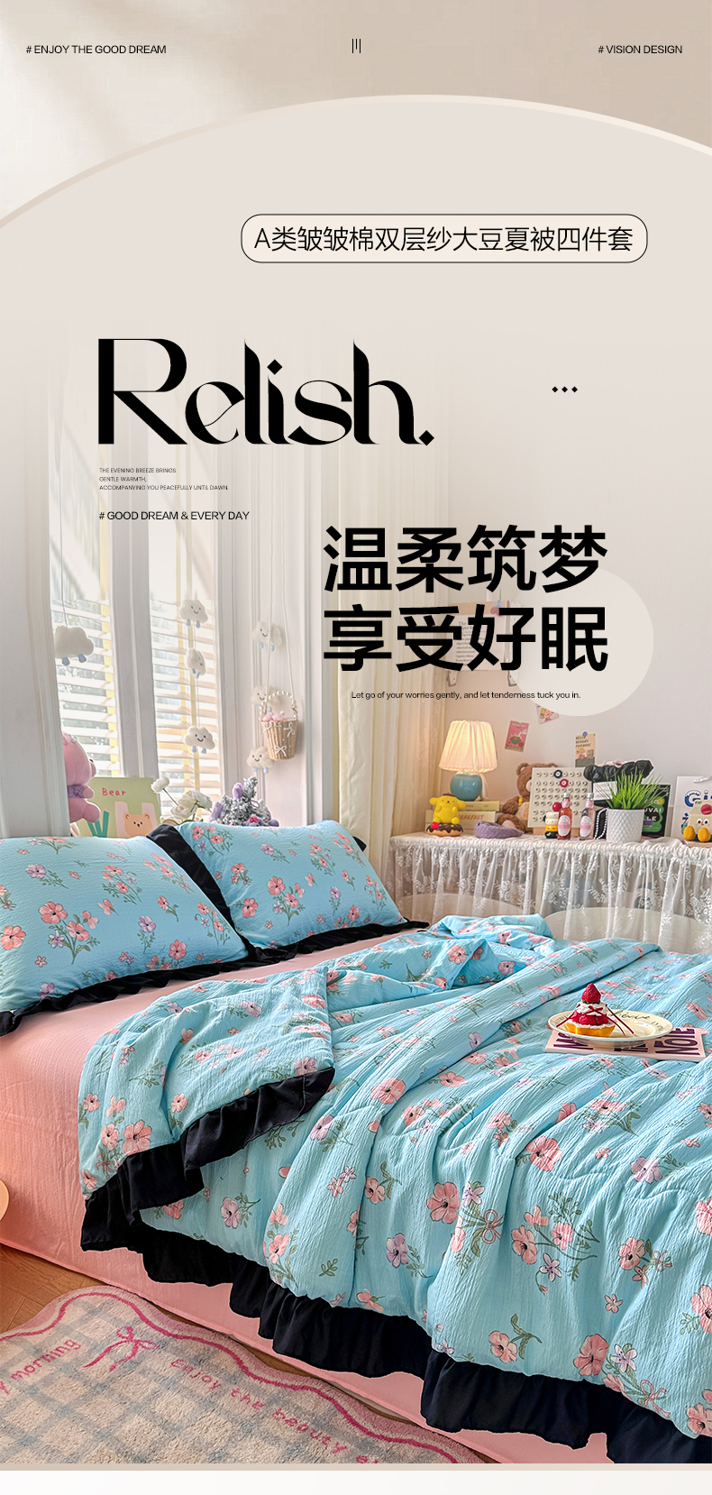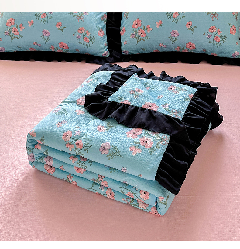 • 91家纺网 家纺一手货源 找家纺 优卡迪家纺馆 2026新款皱皱棉黑花边夏被四件套下载文件包含买家秀 泡沫之夏(花边款)