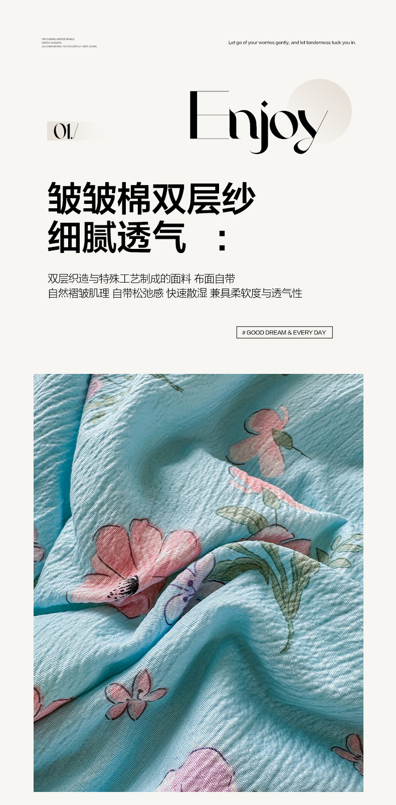 当前位置: 91家纺网 > 商品网购 > 被子 > 夏被 > 优卡迪家纺馆 2026新款皱皱棉黑花边夏被四件套下载文件包含买家秀 泡沫之夏(花边款)