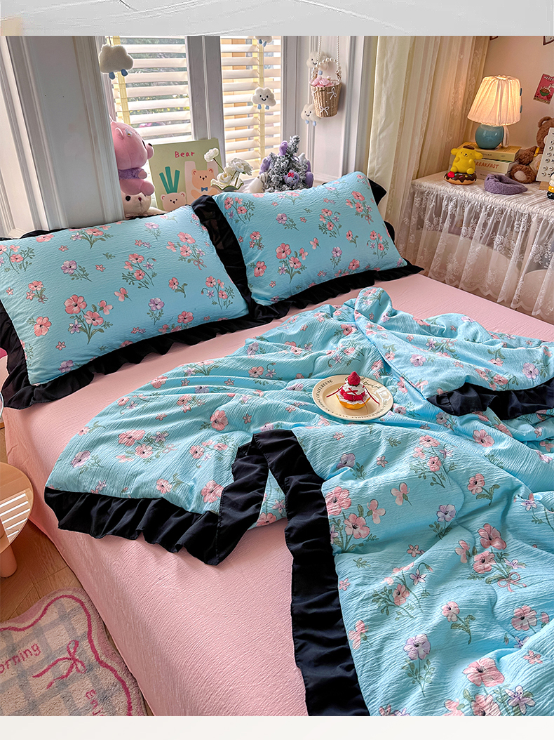 • 91家纺网 家纺一手货源 找家纺 (总)优卡迪家纺馆 2026春夏新款泡泡纱黑花边夏被夏被空调被四件套【下载文件夹包含买家秀】,蓝莓仙草,魔芋橙汁,茉莉奶昔,奶油蜜桃,青柠蜜瓜,香芋紫薯