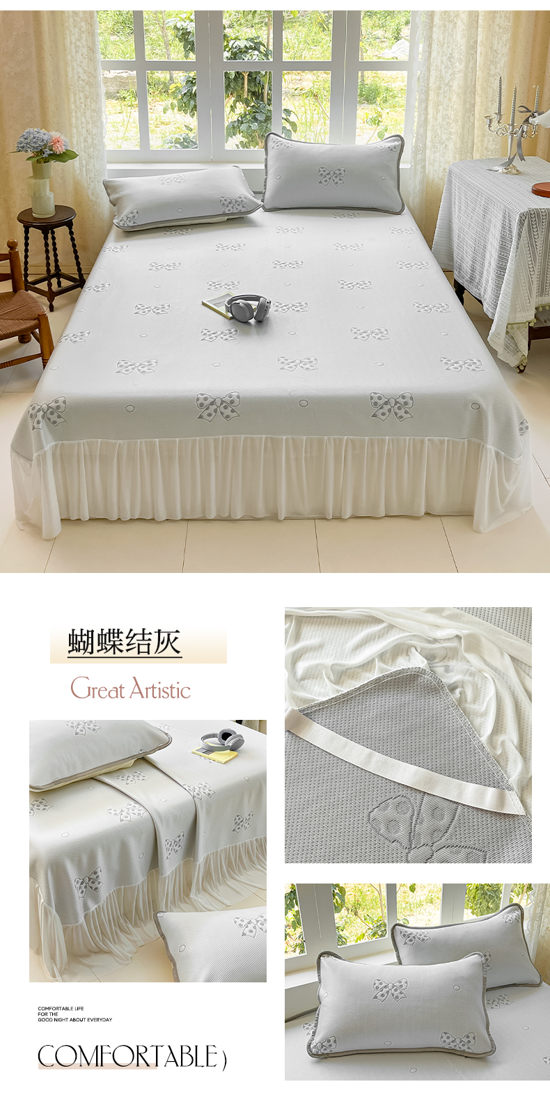 (总)悦织湾家纺 2026新款提花凉豆豆凉席三件套夏季3D豆豆席冰爽席子床笠款蝴蝶结小熊系列,暴力熊粉,暴力熊灰,暴力熊蓝,暴力熊绿,蝴蝶结粉,蝴蝶结灰,蝴蝶结蓝,蝴蝶结绿