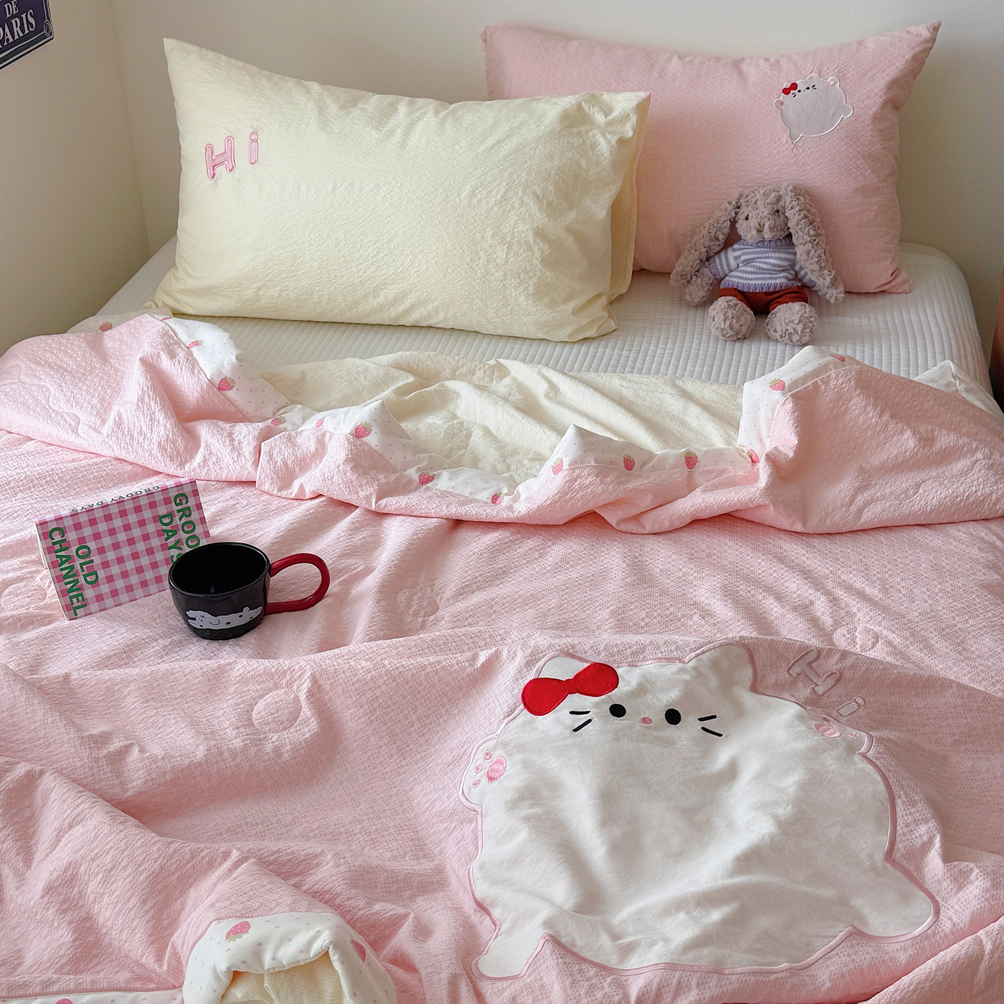 (总)顾里家纺 2026新款云感皱皱纱卡通贴布绣四件套(会员-3元),抱抱兔,粉格趴猫,好运发财马,欢乐狗,黄格趴猫,蓝格趴猫,甜棕熊,幸运考拉