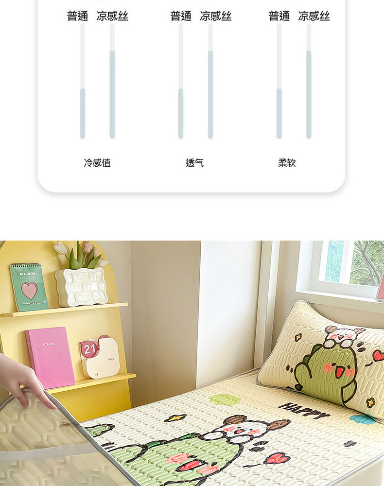 当前位置: 91家纺网 > 商品网购 > 床上用品 > 凉席 > 冰丝席 > 川悦生活 2026新款大版宿舍凉感丝学生床凉席三件套 哈哈恐龙