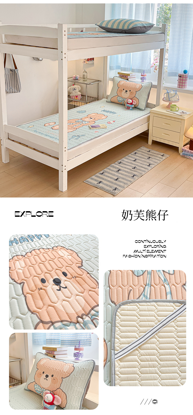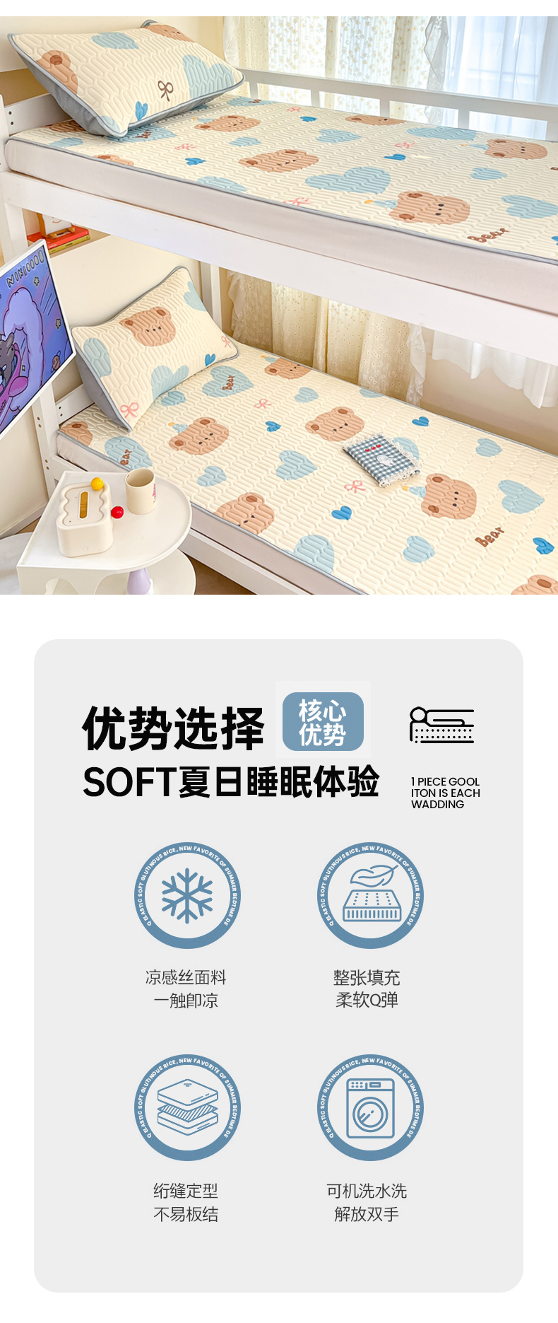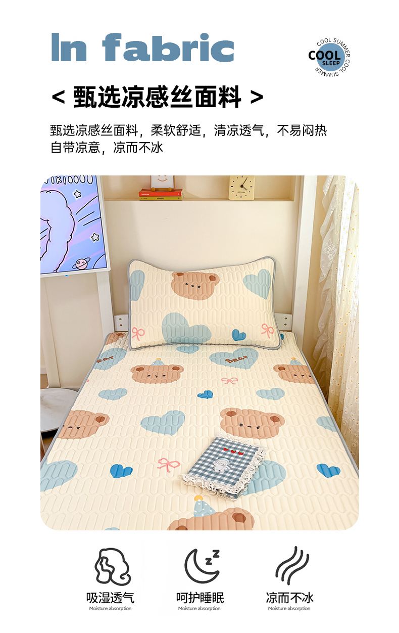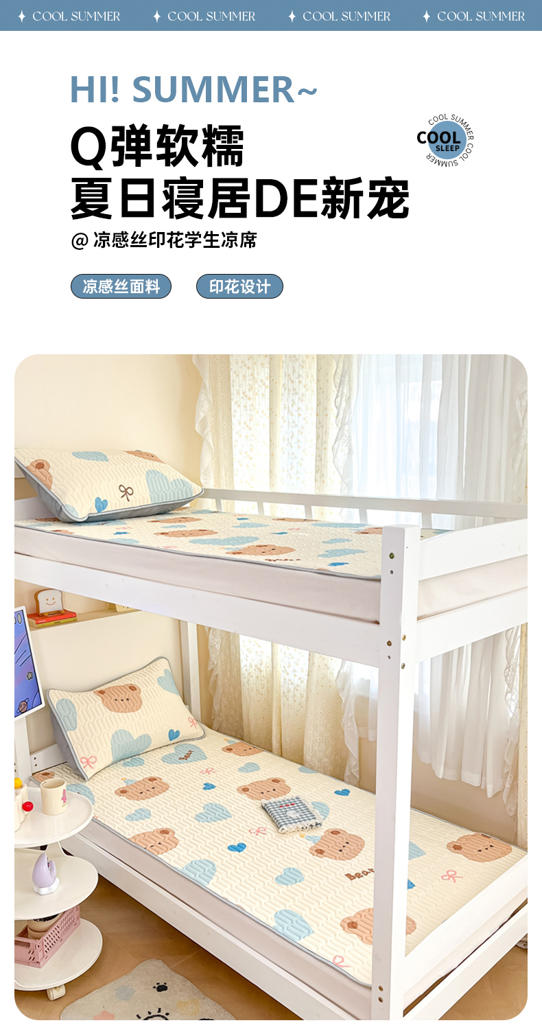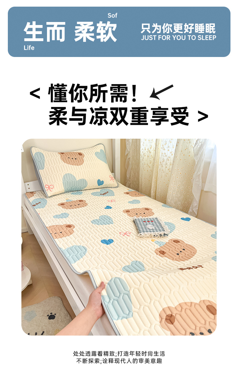 当前位置: 91家纺网 > 商品网购 > 床上用品 > 凉席 > 冰丝席 > 川悦生活 2026新款大版宿舍凉感丝学生床凉席三件套 小熊奶昔