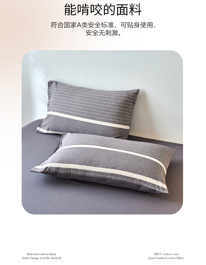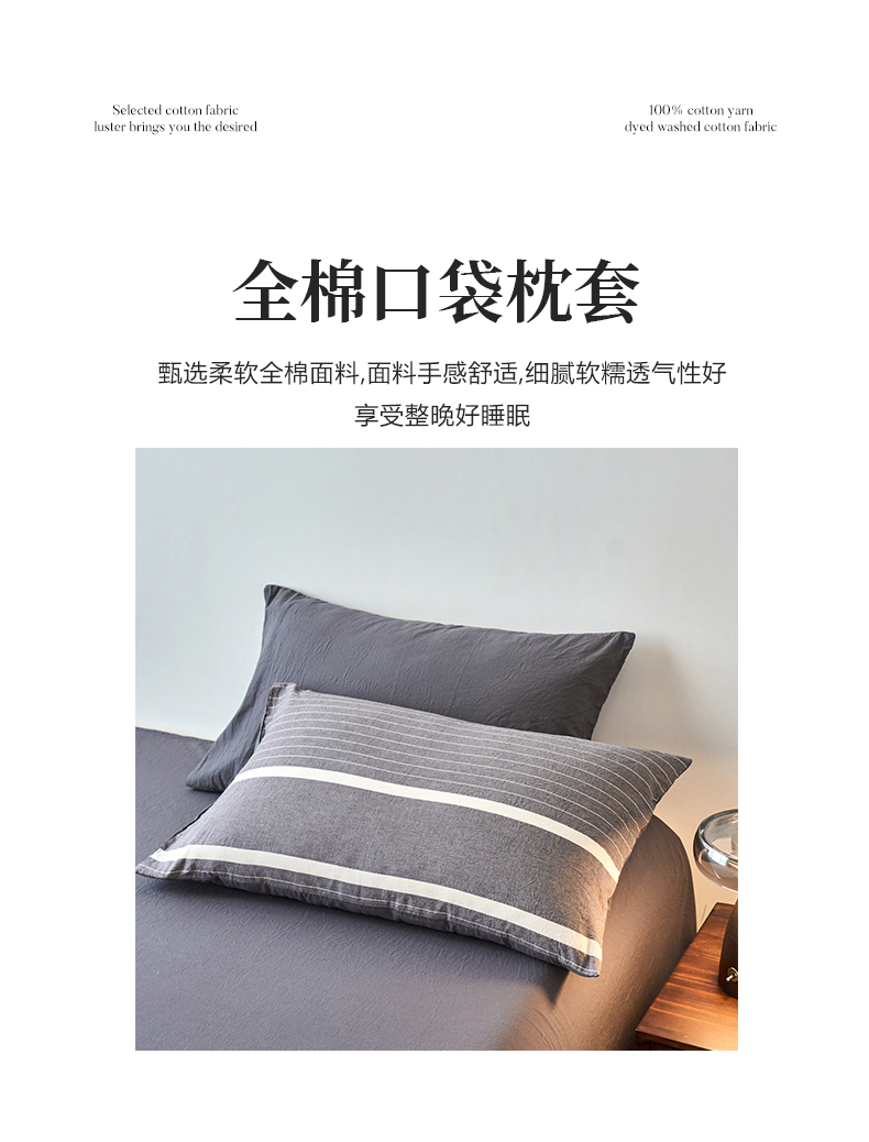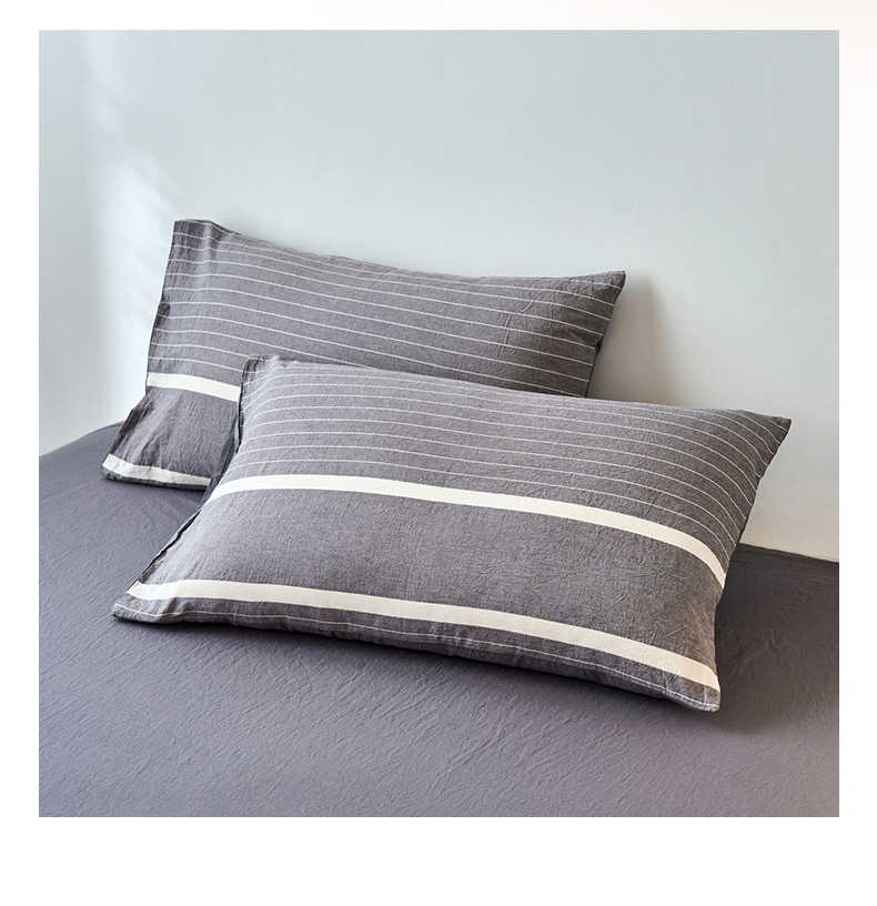 春皖家纺 2026春夏新款全棉水洗棉单枕套枕套单件单品枕套 素雅-灰条