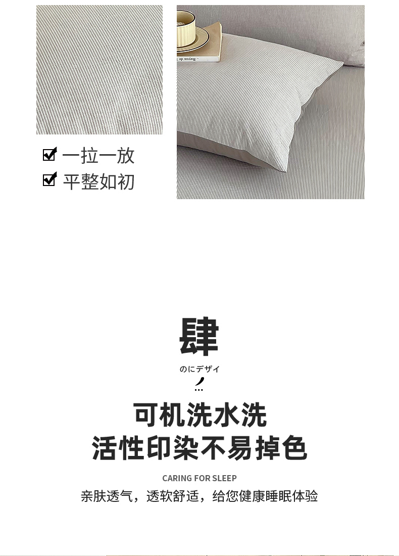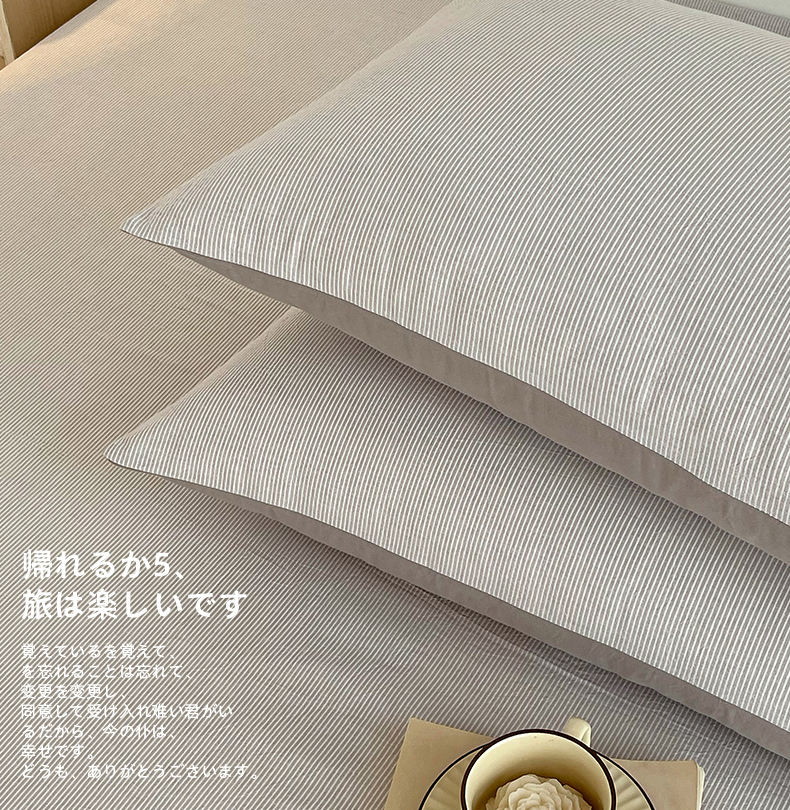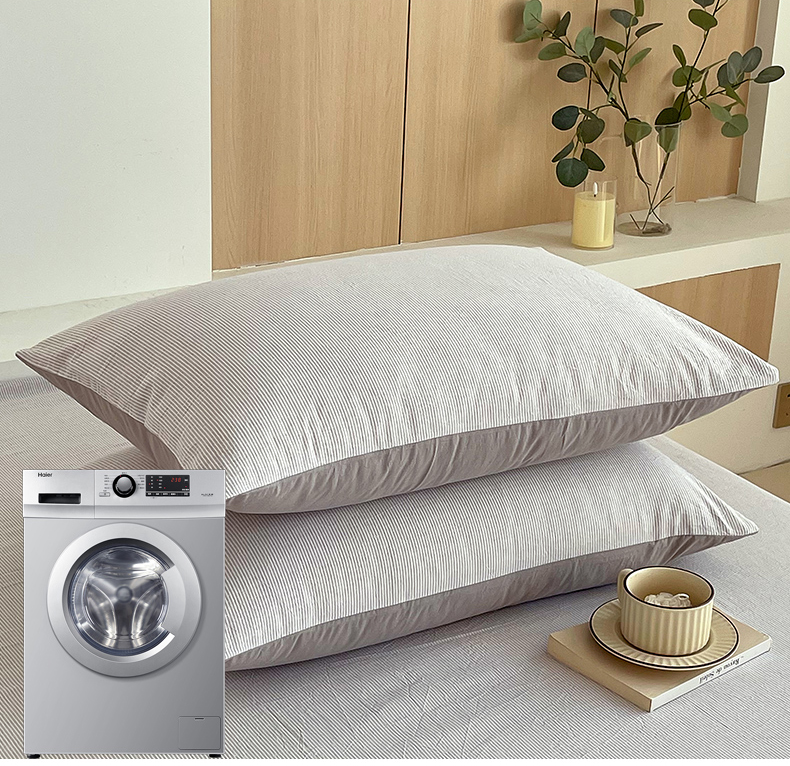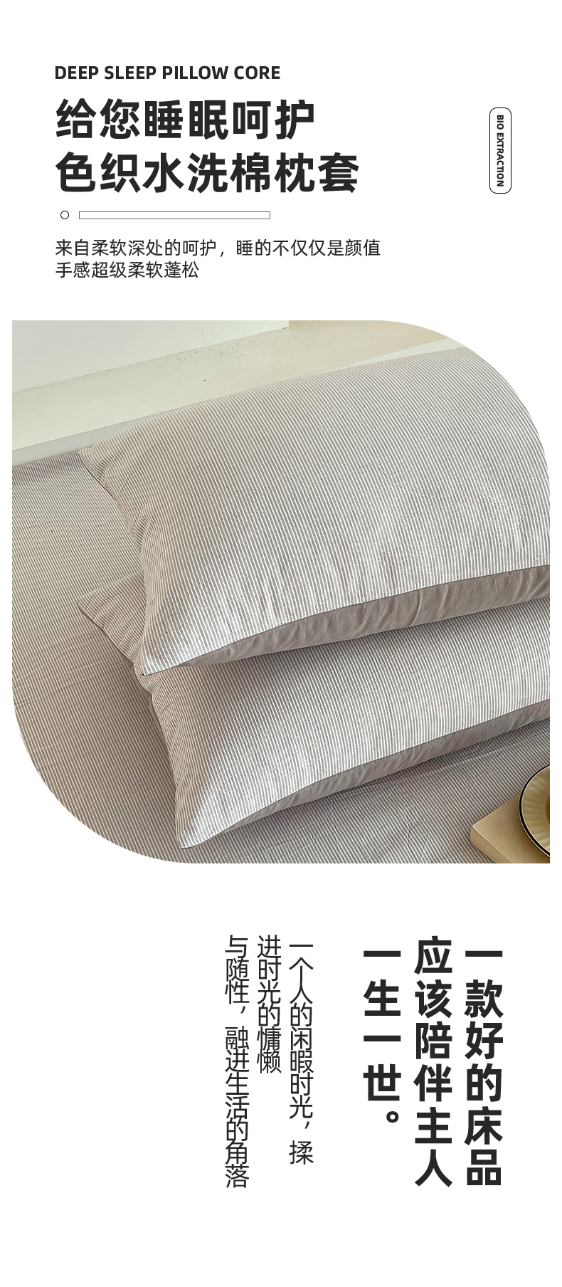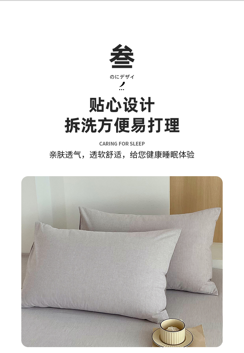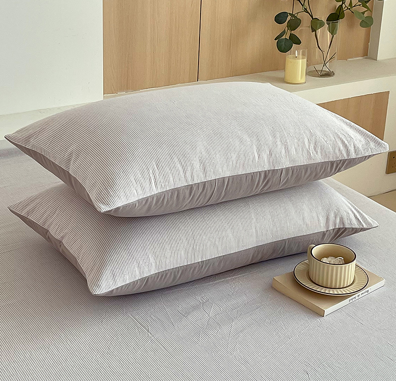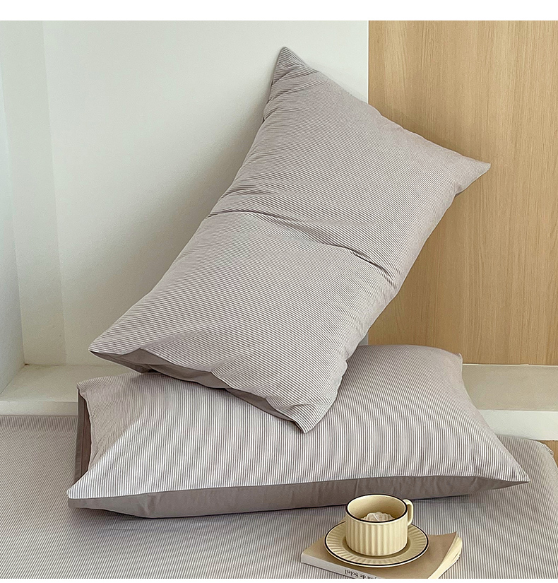 春皖家纺 2026春夏新款全棉水洗棉单枕套枕套单件单品枕套 细条灰
