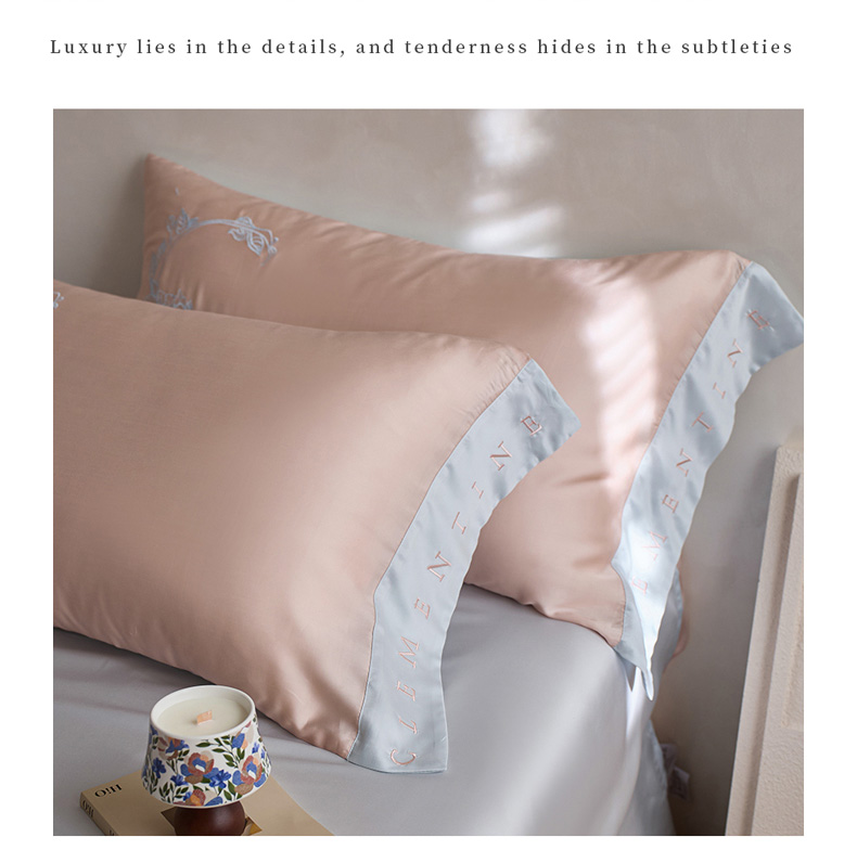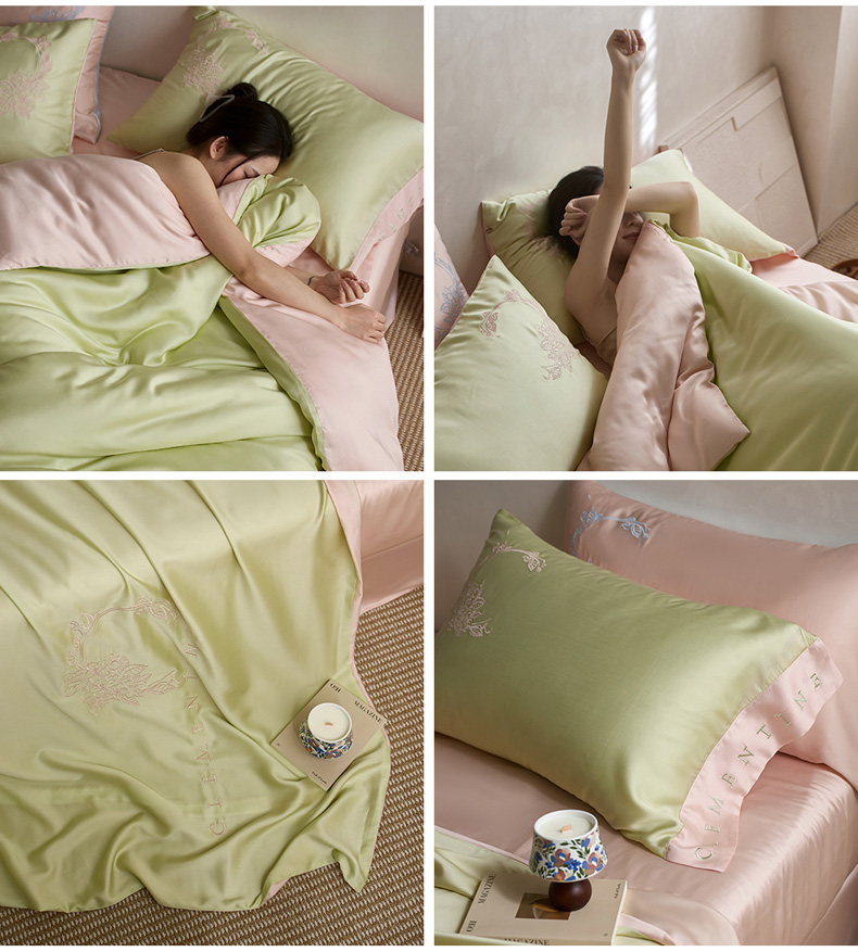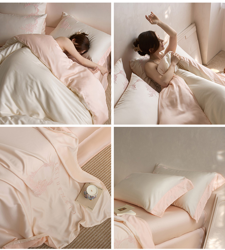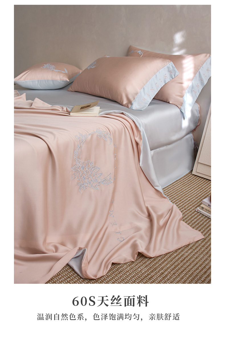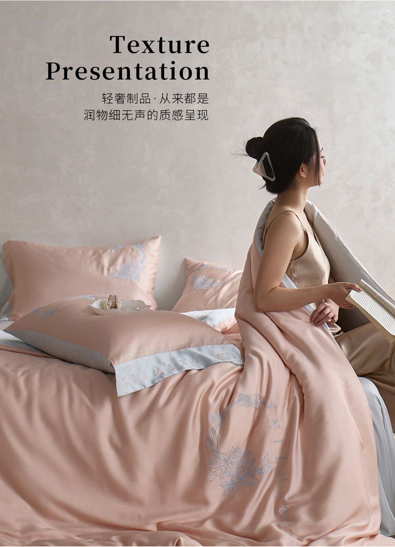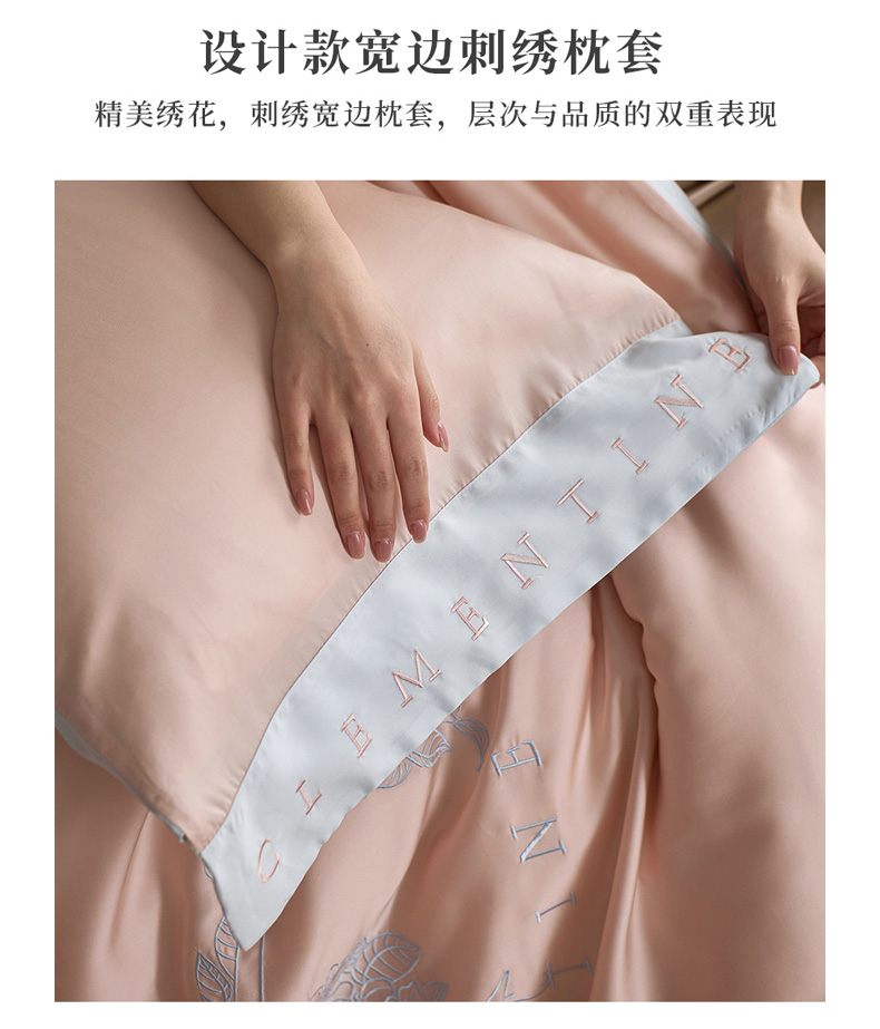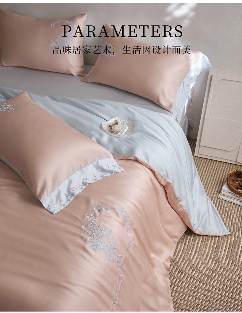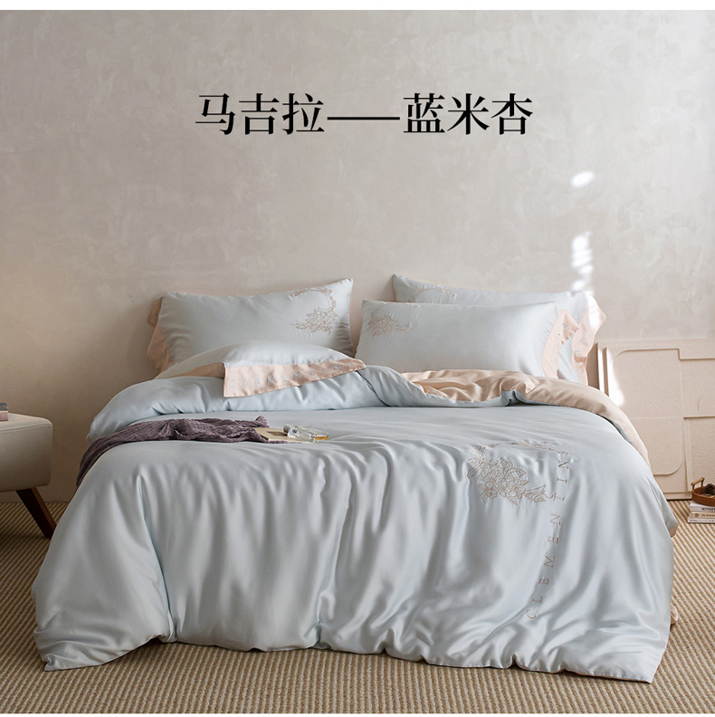 爱缦 2026新款60s兰精天丝四件套-马吉拉系列-风格一 杏粉蓝
