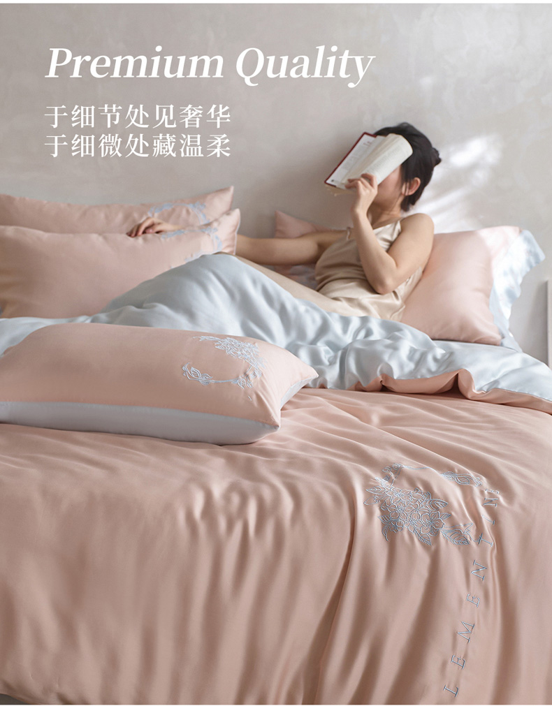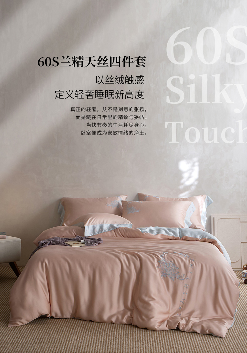 (总)爱缦 新款60支莱赛尔四件套-至真系列,蓝米驼,米白粉,浅紫,玉粉