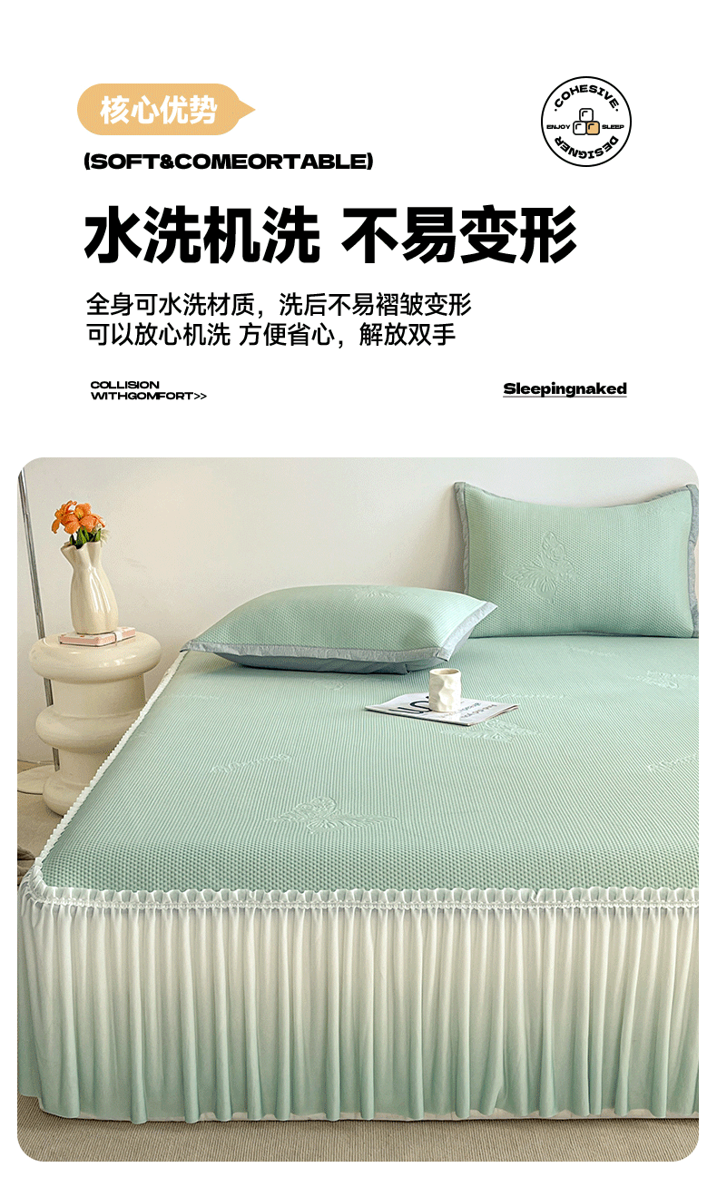 商品名称:(总)安哆啦家纺 2026新款公主仙女风480克PE凉感凉豆豆床裙凉席三件套-豆豆床裙