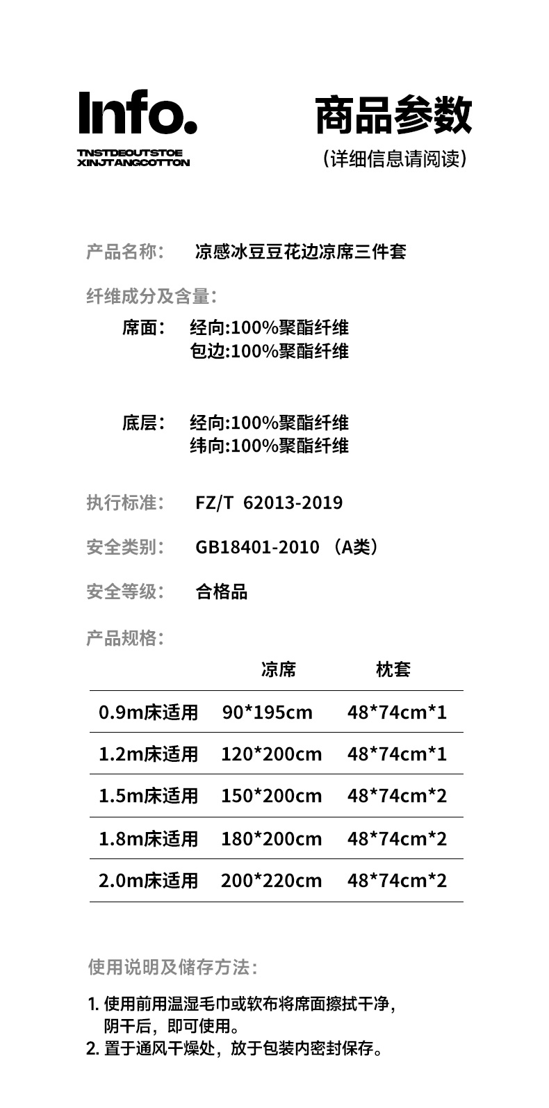 180x200cm凉席+枕套一对